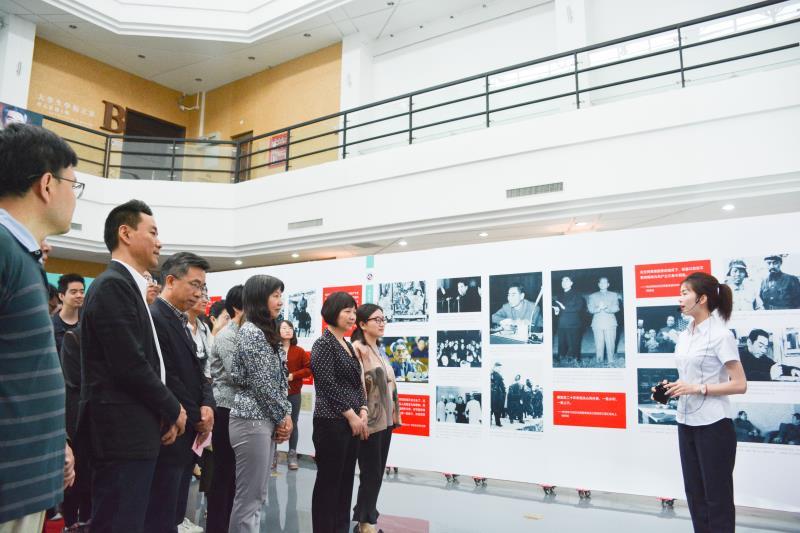 为深入贯彻党的十九大和习近平总书记在纪念周恩来同志诞辰120周年座谈会上的讲话精神,传承党的红色基因、发扬党的优良传统,引导师生党员不忘初心,牢记使命,5月21日上午,由中共yl23411永利官网纪律检查委员会、周恩来邓颖超纪念馆主办,由共青团yl23411永利官网委员会、yl23411永利官网、艺术设计系教工党支部联合承办的《中国共产党人的杰出楷模周恩来》展览在静学楼开幕。周恩来邓颖超纪念馆陈列保管部主任马秀华、信息资料部主任姜月鸿、校纪委书记欧阳媛及各职能处室的主要负责人参加了开幕式,校机关党委、yl23411永利官网部分师生党员等共百余人参加了开幕式。