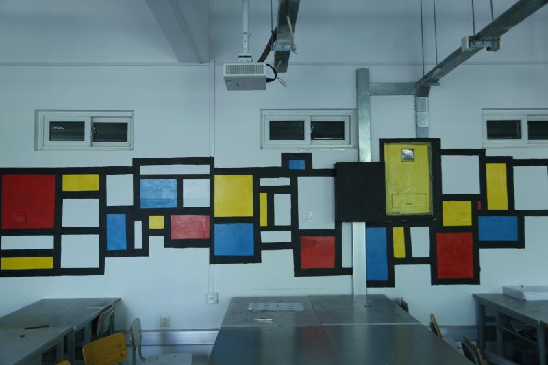 学院领导高度重视专业教室建设,多次强调加强专教建设、营造良好学习环境对学风建设的重要作用。同学们积极参与专教建设,从颜料、画板等工具的选择到空间设计全部由同学牵头负责,激发创作思维,发挥专业优势,在专教建设过程中相互学习、共同切磋。建筑学专业同学以世界知名建筑设计师头像及代表作为背景,设计内容生动有趣;城乡规划学专业同学将北京知名建筑浓缩设计,将现代建筑与古代宫殿的不同风格完美融合;视觉传达专业同学用荷兰艺术家彼埃·蒙德里安的代表作几何抽象图式布置教室,感受设计师的灵感力量。经过一个月的集中建设,专业教室条理整洁、座列井然,为专业课堂教学和课后学习创造了良好的硬件条件。