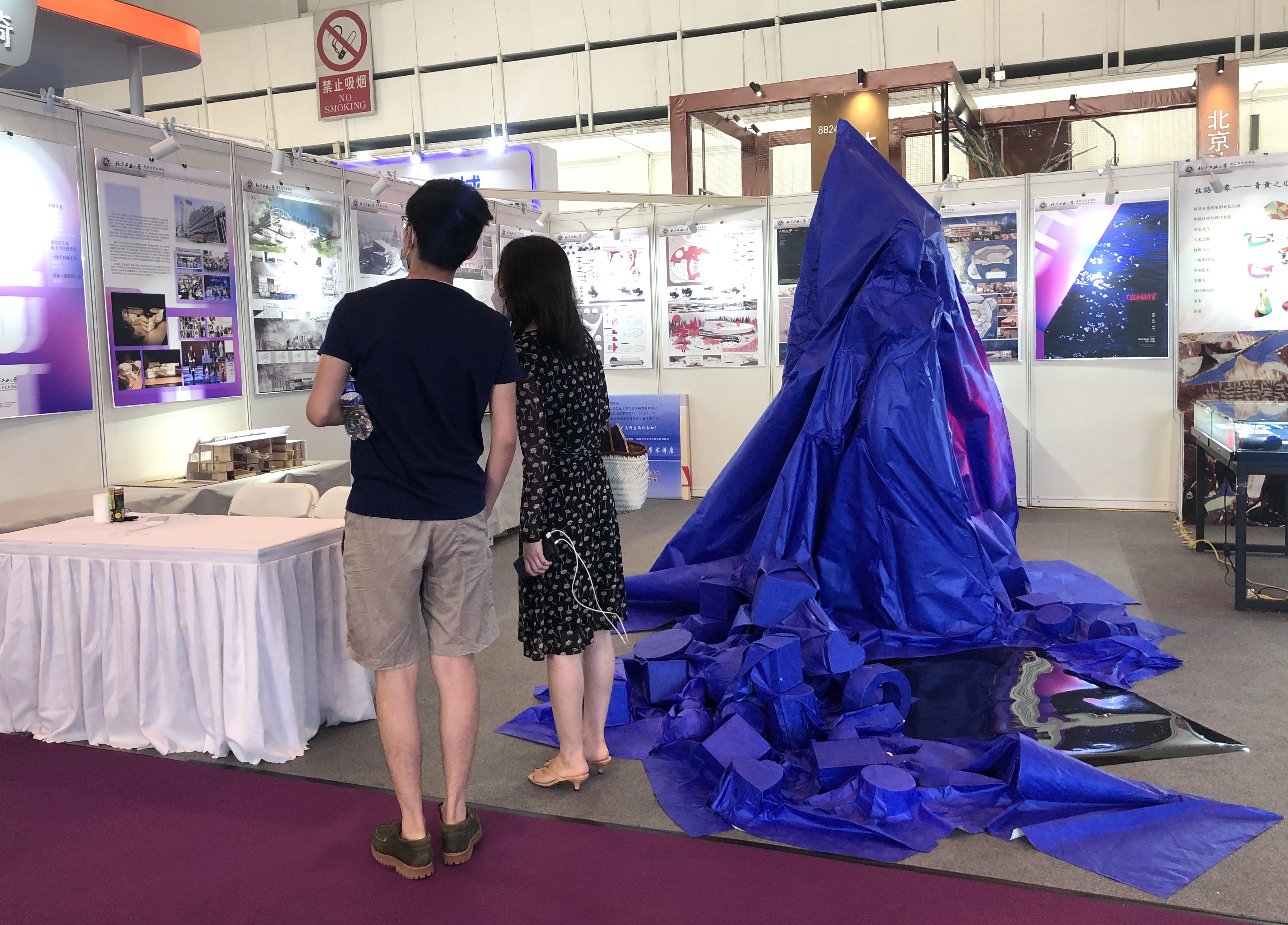 永利官网yl23411永利官网高度重视本次展览,组织了建筑系、基础教学部、艺术设计系的教师、学生参展,部分优秀设计作品入选展览并在展览中展出。其中有建筑系马欣副教授指导的学生作业“建筑学专业学生设计的剧场剖切模型”、基础教学部张杞峰副教授设计的服装装置作品《海啸》、艺术设计系张鹏程老师设计的装饰作品《丝路印象——青黄之维装饰设计》。