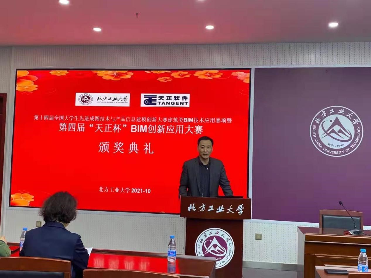 2021年10月14日,在7月份举办的第十四届全国大学生先进成图技术与产品信息建模大赛建筑BIM应用赛项暨第四届“天正杯”BIM创新应用大赛中,永利官网yl23411永利官网组织的参赛团队取得了团体特等奖第一名的优异成绩。为激发广大同学的参赛热情,提高同学们的BIM应用水平,yl23411永利官网张勃院长、天正公司张志超总监与秦骥总监为指导老师和获奖同学(沈佳、张子寒、韩永馨、段文漪、何伊雯)颁发奖杯和获奖证书。