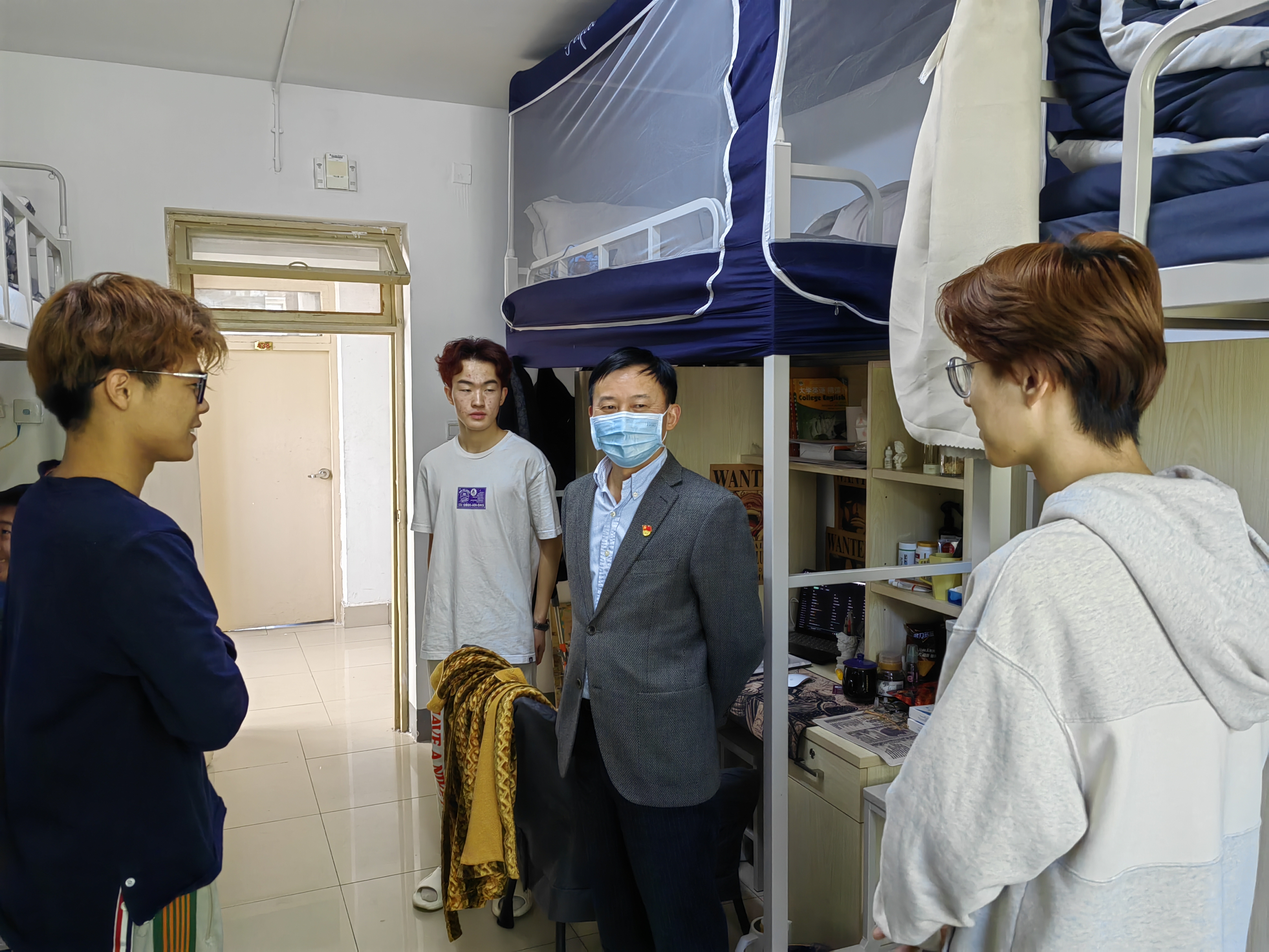 在走访中,学院领导和老师们每到一处,首先向学生们表达了学院的关心与问候。“毕业论文写得怎么样了?”“有去操场运动吗?”“今天的核酸检测完成了吗?”“在学习、生活上有没有什么困难?”在走访宿舍的过程中,学院领导、班导师、辅导员与同学们亲切交谈并指导新生积极适应疫情时期的校园生活,指导毕业生选择考研学校和树立就业求职目标。