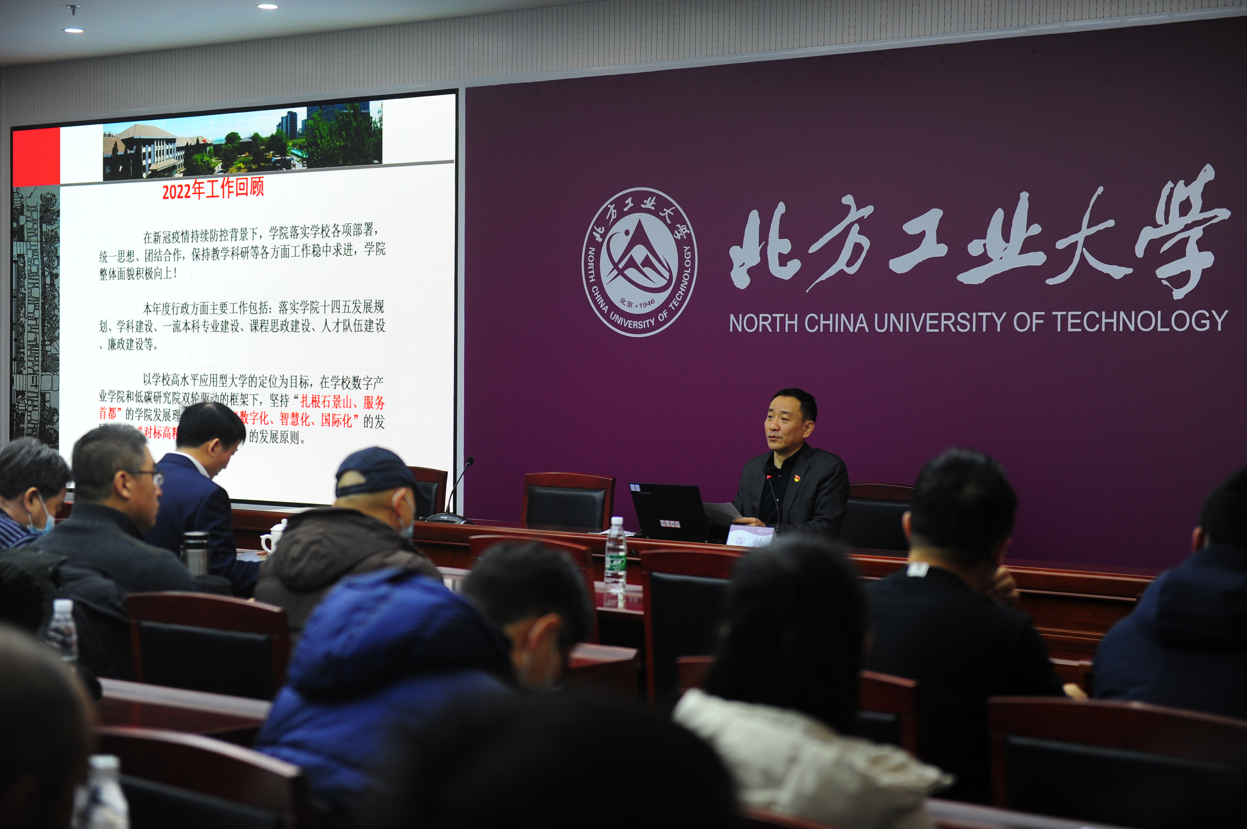 学院院长张勃在工作报告中,全面总结了2022年学院在教学科研和扎根石景山服务首都经济社会发展等方面所取得的主要成绩,围绕学校在“十四五”规划时期,建设以智能化、信息化、绿色化和国际化为特色的高水平应用型大学的目标和2023年学校重点工作任务,结合学院实际,重点从迎接教育部本科教育教学审核评估、高层次人才引进和师资队伍建设、招生、培养和就业一条龙人才培养模式、专业发展规划和学科建设、国际交流等几个方面,对学院相关工作进行了部署。