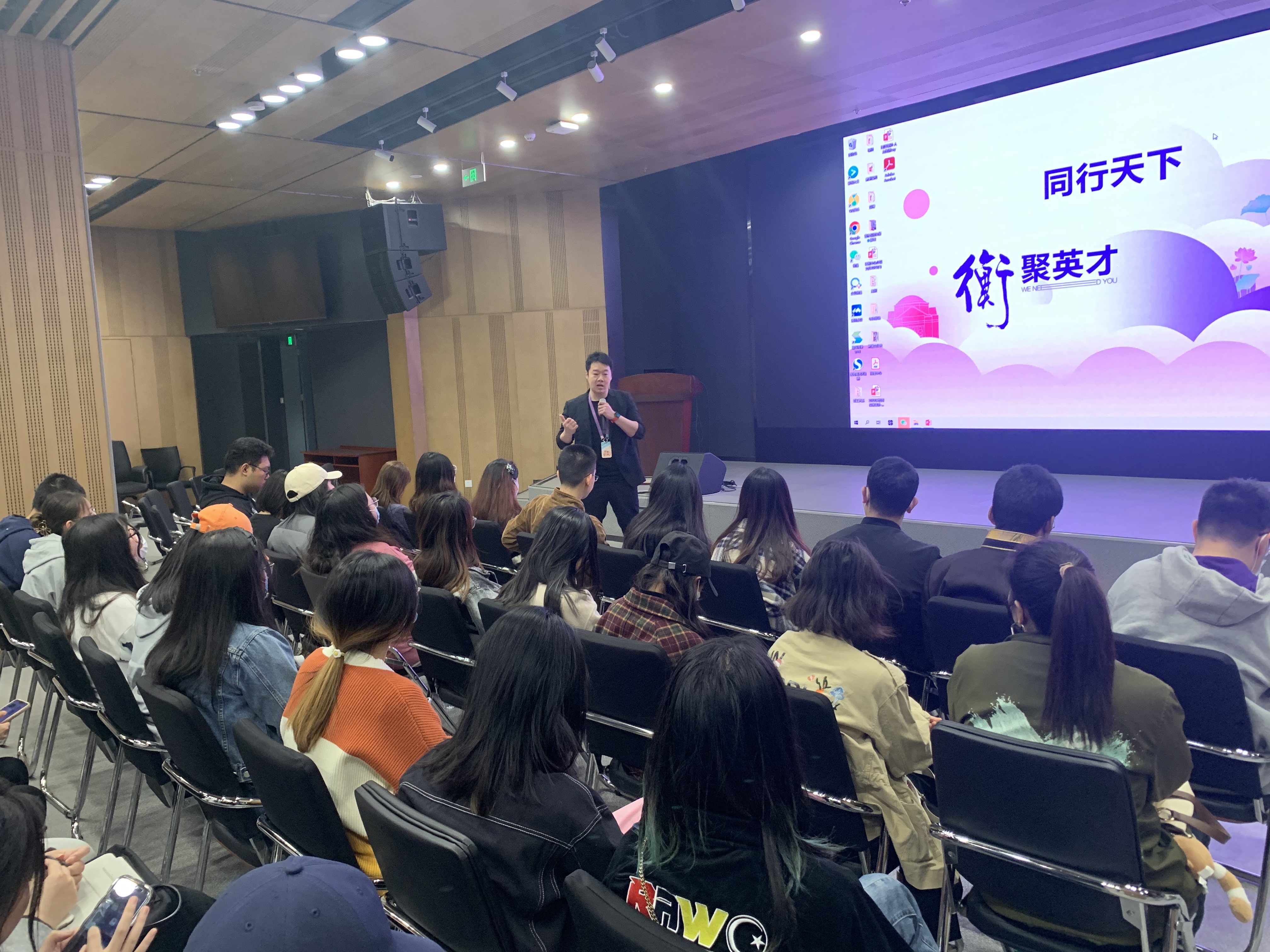 清华同衡招聘专员向同学们介绍了企业发展概况、企业文化、核心产品等方面的内容,对公司的人才培养、工作环境、薪酬待遇、员工福利等方面进行了讲解,同时对公司的校招需求及招聘流程进行了说明。在互动环节,招聘负责人就同学们关心的各种问题做出了详细解答,同学们结合自身实际积极投递个人简介。