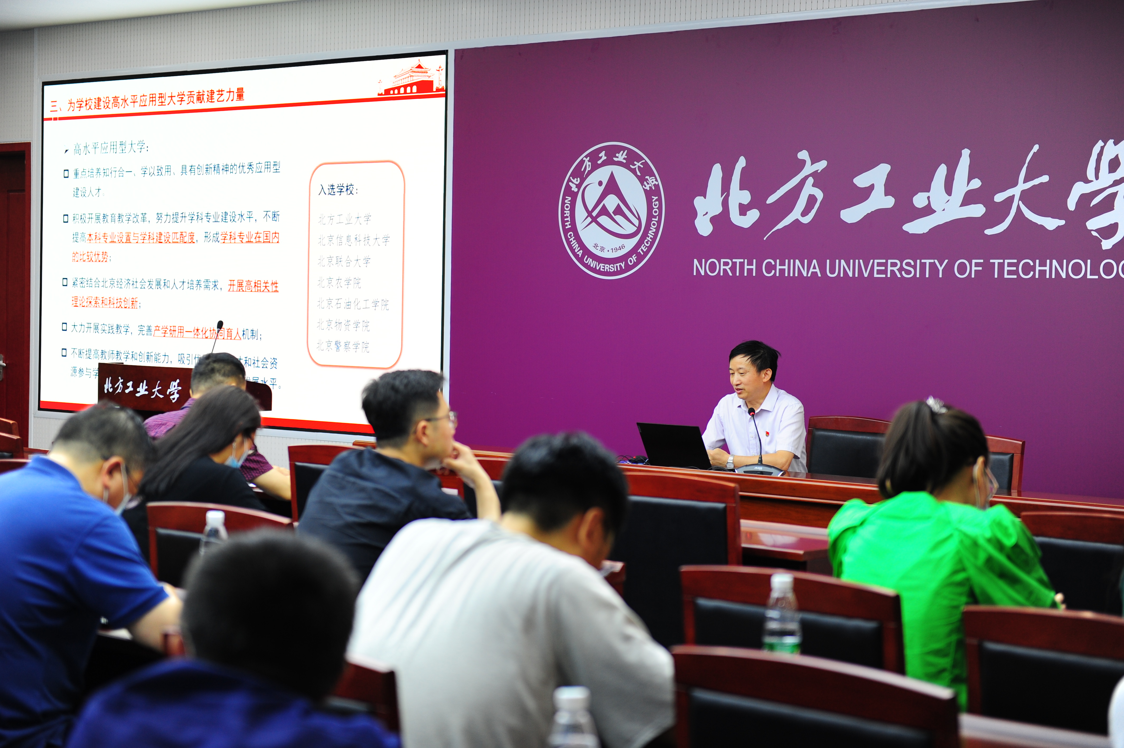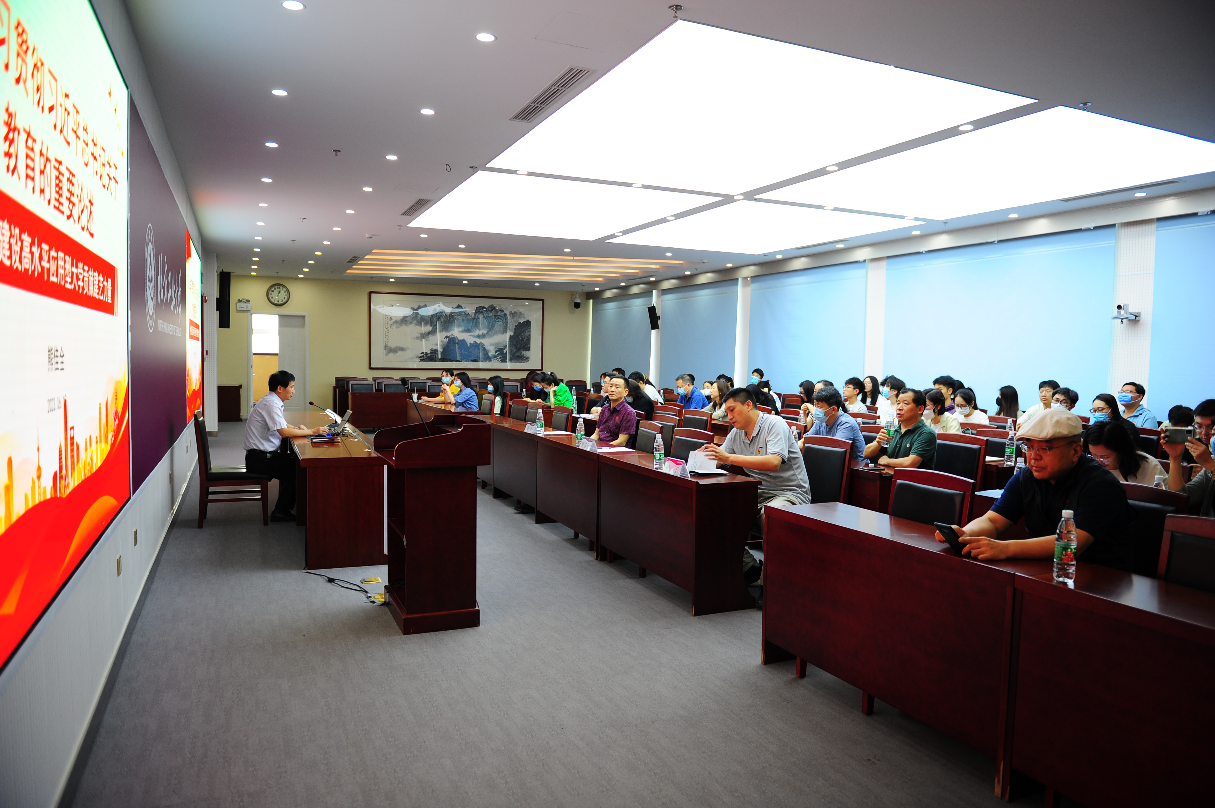 熊佳全在专题党课中讲解了新时代我国教育事业的总战略、目标任务、“九个坚持”等习近平总书记关于教育的重要论述的核心内涵。随后和大家分享了学习习近平总书记关于教育强国的重要讲话精神的个人体会。最后带领大家共同学习研读北京市“高水平应用型大学绩效考核评价指标体系”,引导大家结合学院实际、立足本职岗位,深度思考校党委书记缪劲翔在学校教职工代表会上提出的“服务首都高质量发展,我能做些什么?建设高水平应用型大学,我应当怎么做?” 两个重要问题。