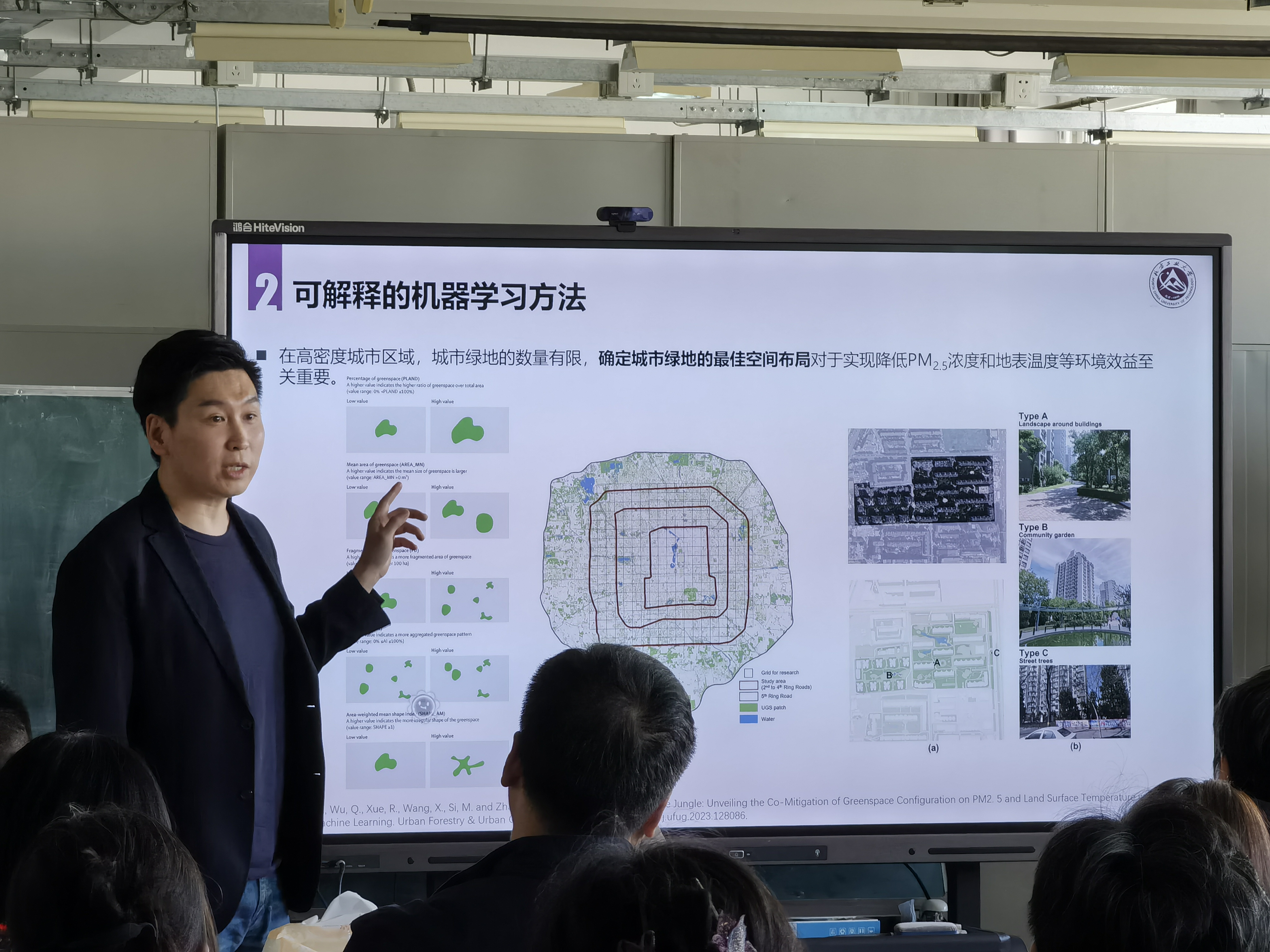 讲座中,张雨洋从研究数据获取、方法模型构建、案例分析、文章发表等方面入手,对其近年开展的主要科研工作及发表的高水平论文进行了系统的介绍说明。以生动形象的案例与各位同仁探讨了移动传感、遥感与大数据、计算机视觉、可解释机器学习、环境监测等关键技术问题以及介绍了SCI论文发表的经验。现场交流环节气氛热烈,张雨洋对各位教师及学生的提问进行了详细的解答,并分享了相关资料,讲座受到师生的好评。