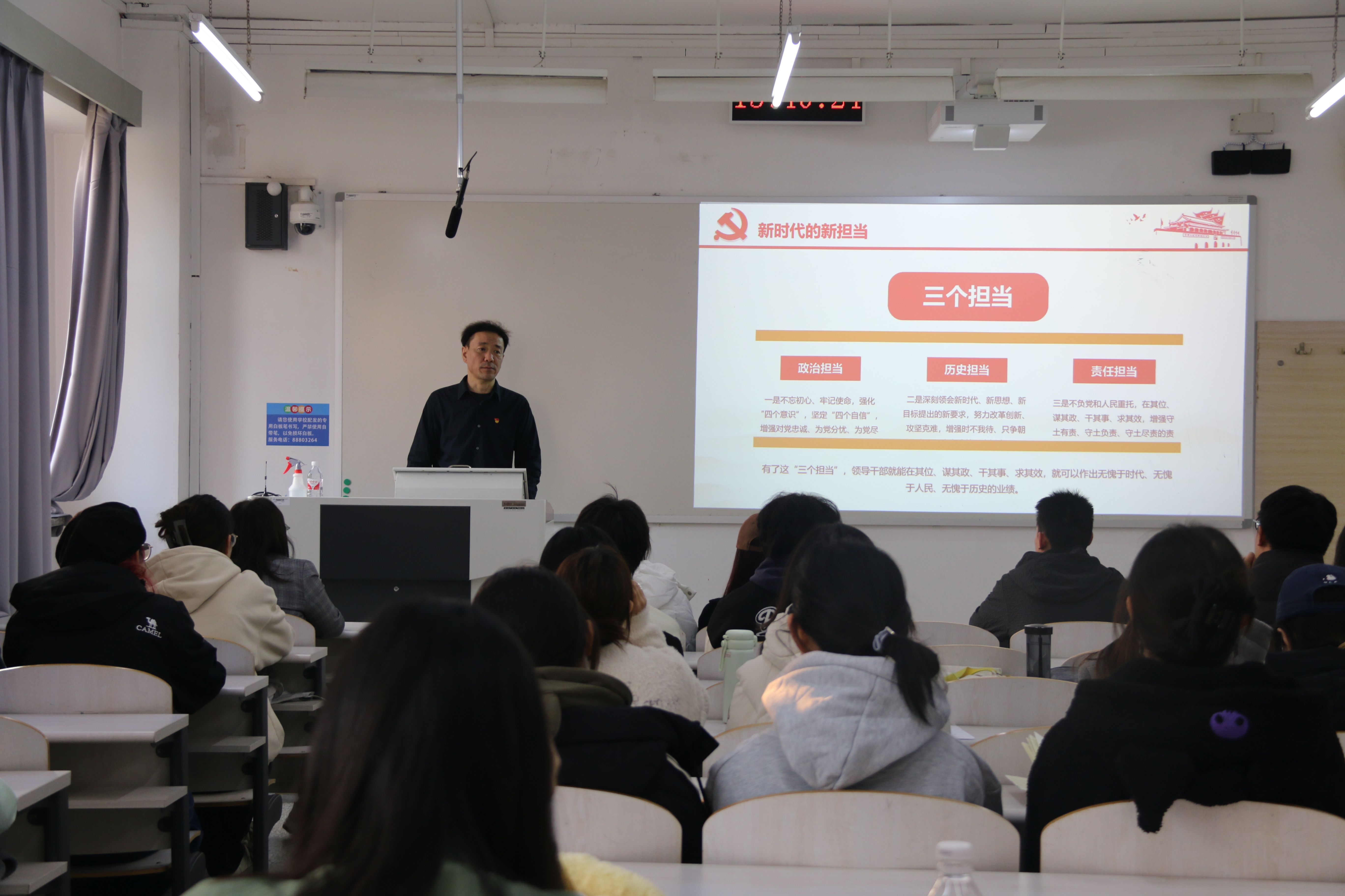学院党委书记张勃给2024年新发展党员讲党课。他强调,中国特色社会主义进入新时代给予大学生实现人生梦想的广阔舞台,广大青年学生在投身新时代、展现新作为的征程中,需要坚定的理想信念作为支撑,要深入领会新思想的深刻内涵和精神实质,切实做到学懂弄通做实,不断增强“四个自信”,保持对远大理想和奋斗目标的清醒认知和执着追求。一是要在“学懂”上下功夫。要坚持读原著、学原文、悟原理,认真学习、准确领会新思想新观点新论断,真正做到学深悟透。二是要在“弄通”上下功夫。要把习近平新时代中国特色社会主义思想作为一个完备的科学体系,采取理论和实践、历史和现实、当前和未来相结合的方法融会贯通,特别是深刻掌握这一思想的政治意义、历史意义、理论意义、实践意义。三要在“做实”上下功夫。要坚持学而信、学而思、学而行,不断增强对新时代中国特色社会主义的认同感,学习成果转化为不可撼动的理想信念,用理想之光照亮青春之路,用信仰之力开创美好未来。