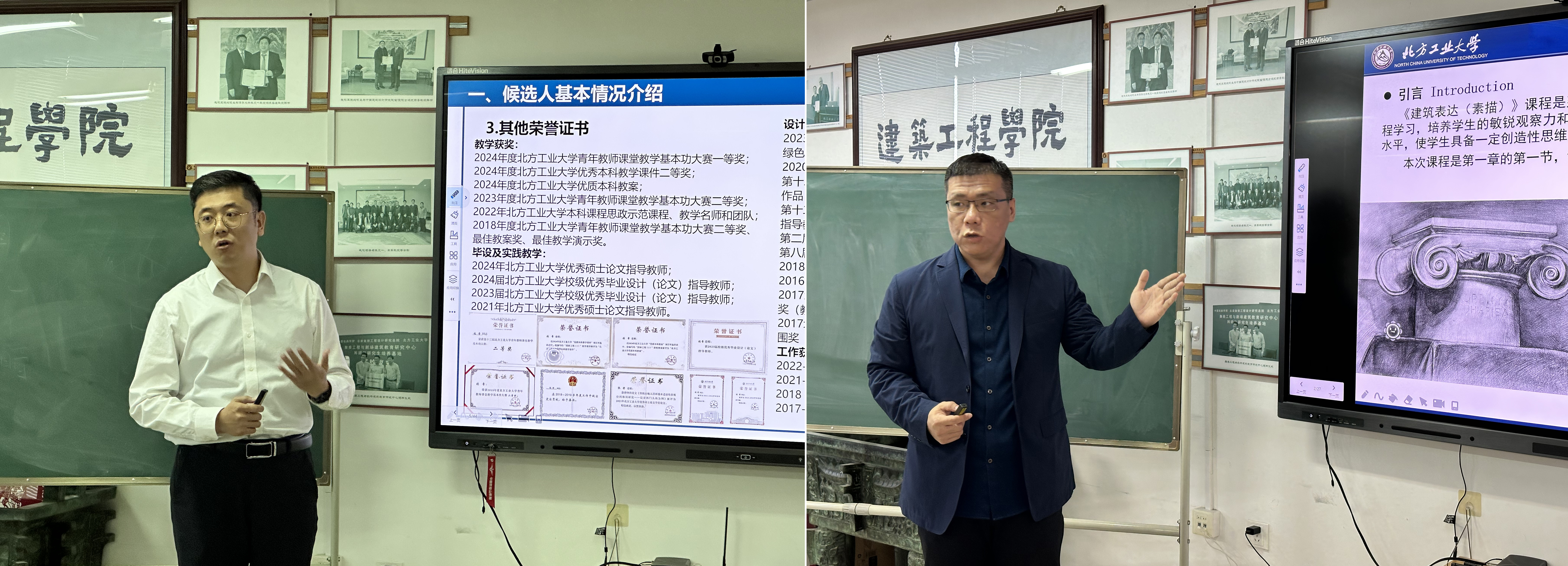 经过教师个人申报、学院审核,共有2名青年教师进入学院推荐评审环节。会上,参评教师从个人申报情况及主讲课程教学演示两方面进行了全面展示。全体评委对参评教师的申报材料、教学演示给予了肯定并提出了详细的完善意见。北京市教学名师贾东教授从材料撰写、教学设计、教学组织、板书设计等多角度对参评教师给予指导并进行了现场示范。