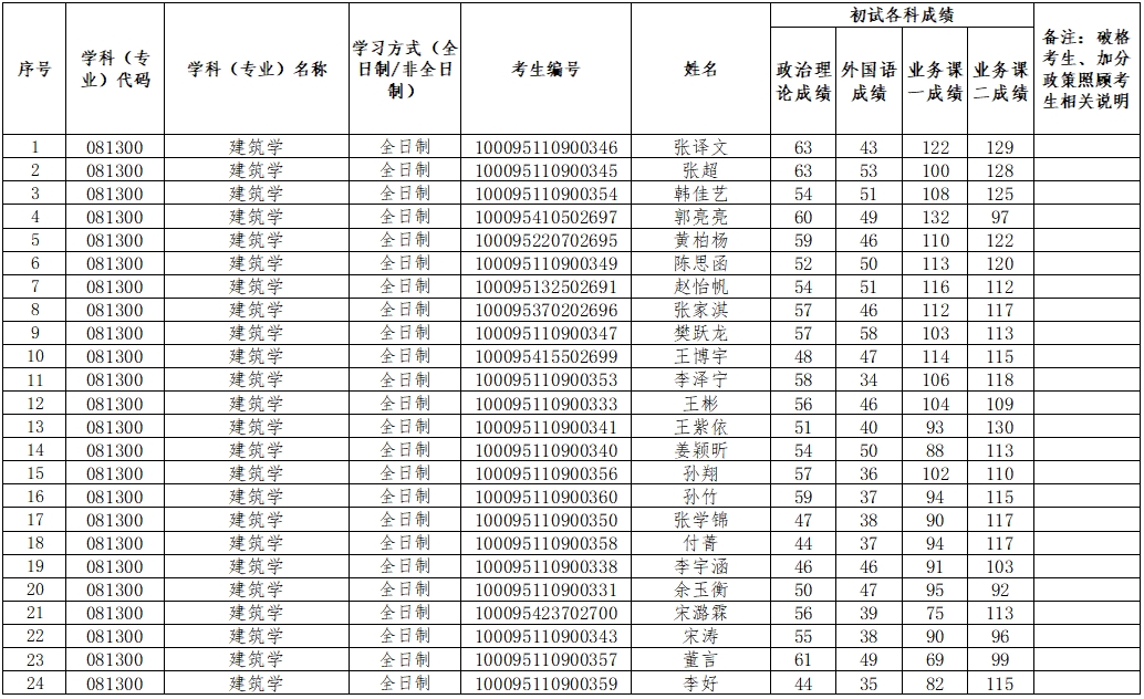 2025年硕士研究生招生考试建筑学(081300)第一批次复试考生名单公示