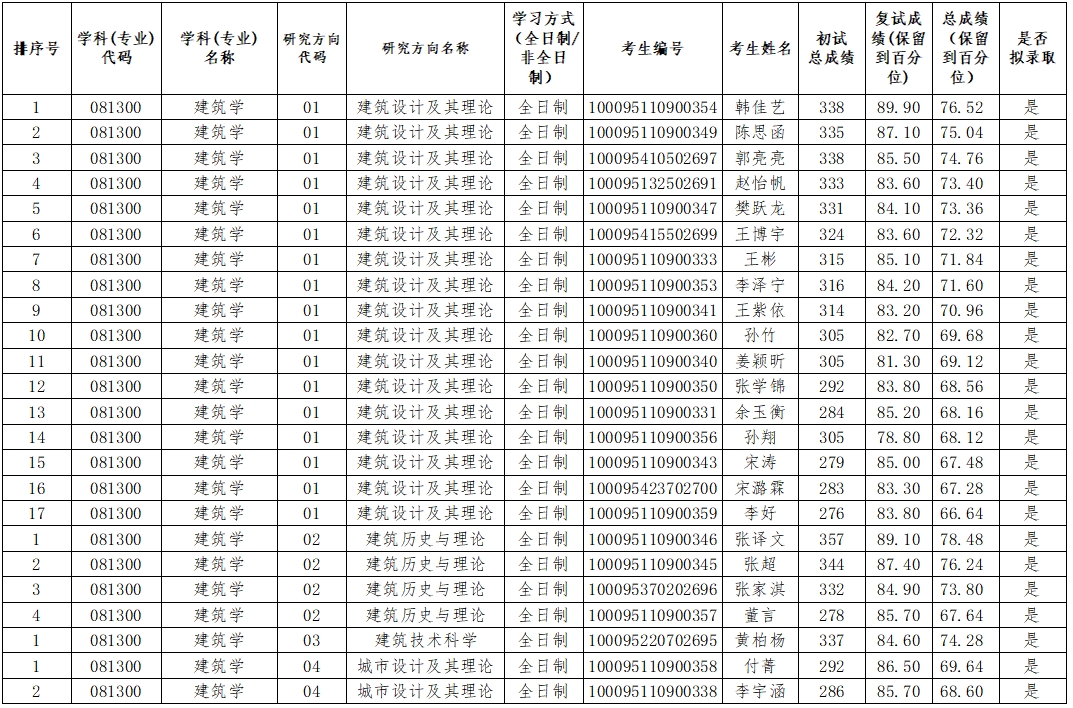 2025年建筑学(081300)第一批次复试结果公示如下: