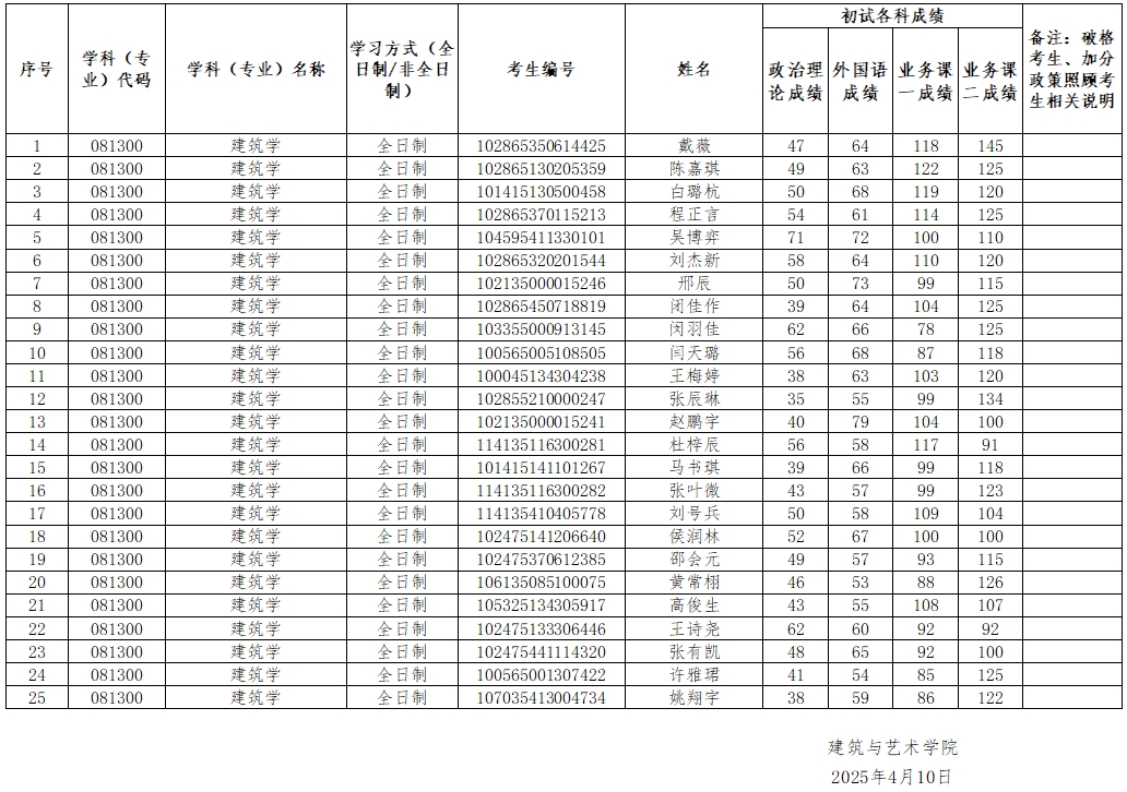 2025年建筑学(081300)第二批次复试考生名单公示(01建筑设计及其理论方向 )