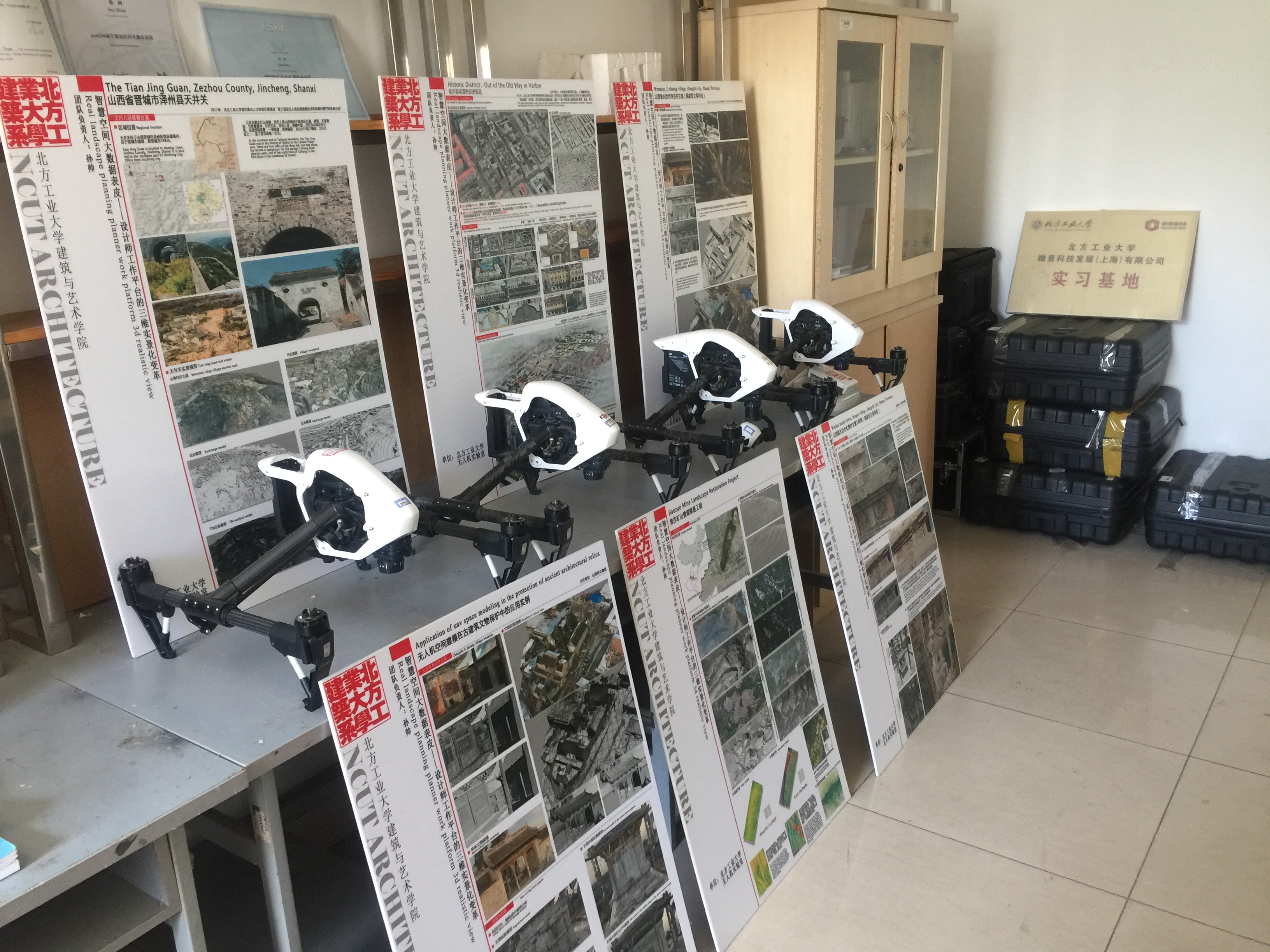 上图:本学院拥有十余架不同型号的新进无人机,学生们在城市规划与设计、村镇调查研究、文物建筑与遗产保护等诸多领域都可以操作无人机进行快速高效的工作。