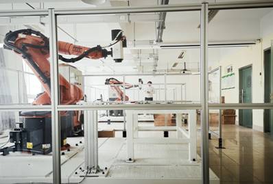 上图:智能建造机械臂是具有国际领先水平的装备,同学们可以进行数字化智慧设计领域的大胆尝试。