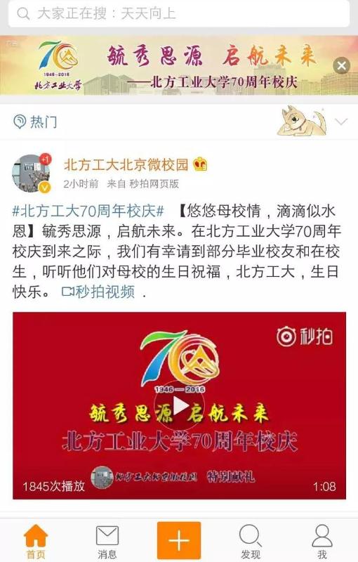 2017年5月,马可出任微博校园北京渠道省主管、微博校园品牌包装设计师,从校园主编到省级主管,马可在新媒体的道路上越走越远。在充分掌握新媒体工作经验的同时,马可充分发挥专业优势,在yl23411永利官网建校70周年校庆系列活动中,承担了相应的新媒体宣传工作,运营了#北方工大70周年校庆#微博话题,夺得教育榜第三名的成绩,并在校庆日当天在全国范围内为母校投放了600万资源的微博置顶广告,大大提升了宣传效果。
