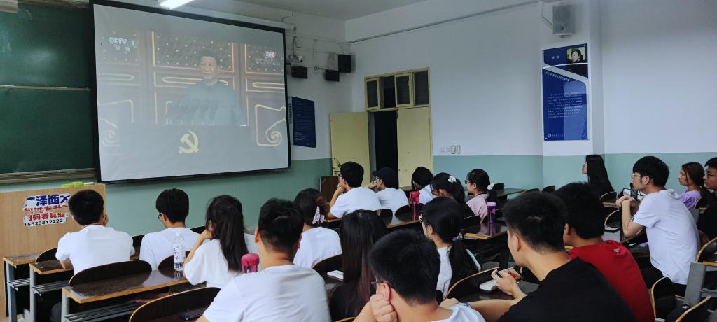 7月1日,庆祝中国共产党成立100周年大会在北京天安门广场隆重举行。beat365中文登录入口班子成员和教师、学生党员代表集中收看庆祝大会实况,其他师生通过电视、网络、手机等收听收看大会直播,认真聆听习近平总书记在庆祝中国共产党成立100周年大会上的重要讲话,一起见证中华民族的伟大复兴。