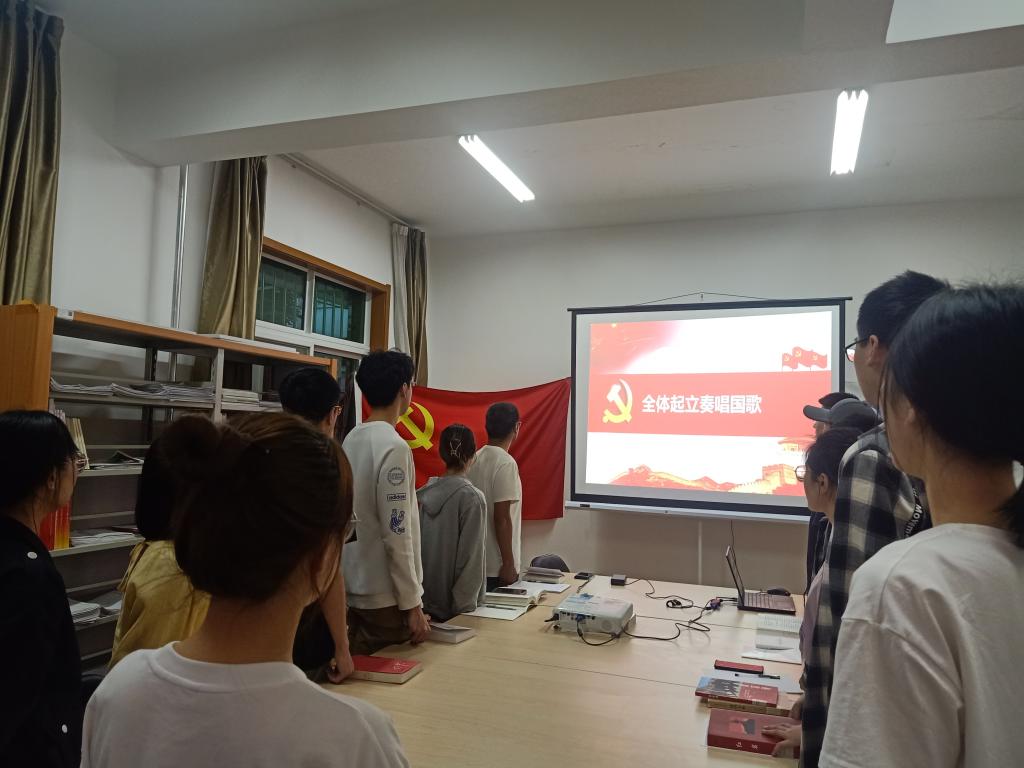 在全体党员、积极分子起立奏唱国歌之后,党史读书交流会拉开序幕。学生党员分别向大家分享了《红岩》、《长征》、《近代中国的历史与经验》、《梁家河》等经典书籍,以“阅读、分享、点评”的形式,结合自身实际和切身体会,畅谈所感所思。接着,在共同观看党史纪录片《重生》之后,全体党员、积极分子一起学习了钱学森精神,他一生胸怀祖国,艰苦奋斗,大家表示,以史为鉴可知兴替,身为青年要明确方向,以老一辈知识分子为榜样,努力学习,脚踏实地,为中国梦奋斗。