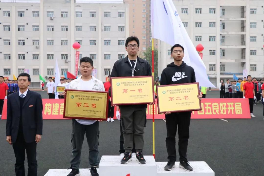 在彩旗方阵的引领下,各学院方阵迈着整齐的步伐,喊着响亮的口号依次入场,展示了西航学子良好的精神风貌,诠释了他们精彩的青春韶华。各二级学院代表队分别在开幕式上进行了精彩的表演。以《没有共产党就没有新中国》为主题的大型团体排舞展演,为庆祝建党100周年献礼。