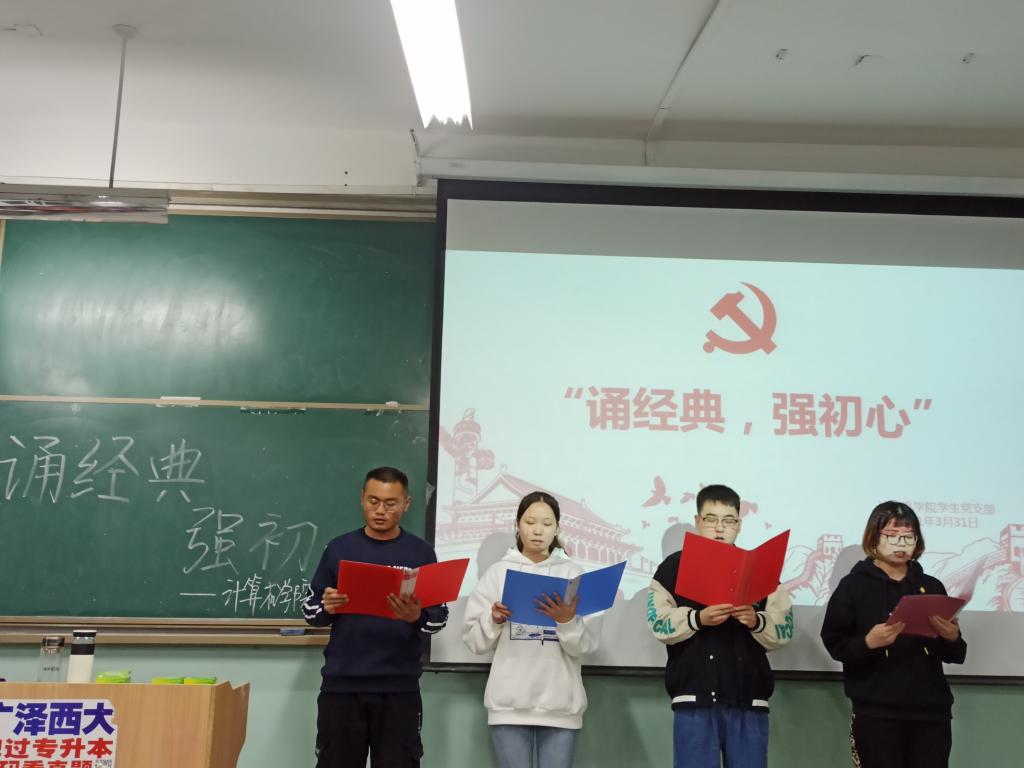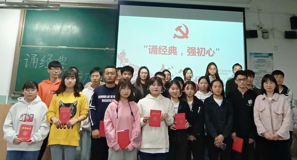 为引导学生党员知史爱国,知史爱党,知史奋进,筑牢红色思想基石、传承四史精神,推动“四史”学习落地落实,3月31日晚,beat365中文登录入口学生第一党支部和第二党支部于沣惠校区教学主楼308联合举办“诵经典,强初心”主题演讲比赛,学生第一党支部书记侯勇、学生第二党支部书记王靖晶以及两个支部党员、积极分子参加。