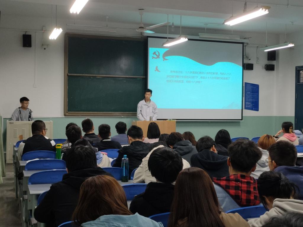 第一组党员以“祖国山河寸土不让”为主题,围绕边境冲突,讲述了喀喇昆仑的边防英雄事迹,大家一起学习了官兵一致生死与共的祁发宝、以身许国青春无悔的肖思远和王焯冉、赤胆忠诚皆为祖国的陈红军、宁洒热血不失寸土的陈祥榕等感人事迹后,雷啸天等同学分享了自己的十八岁,表明身为学生党员要在学习生活中起带头作用;第二组党员以“在疫情大考中彰显中国特色社会主义制度优势”为主题,以新冠疫情的爆发到全世界的疫情防控为切入点,从五个角度分析了中国特色社会主义制度优势。