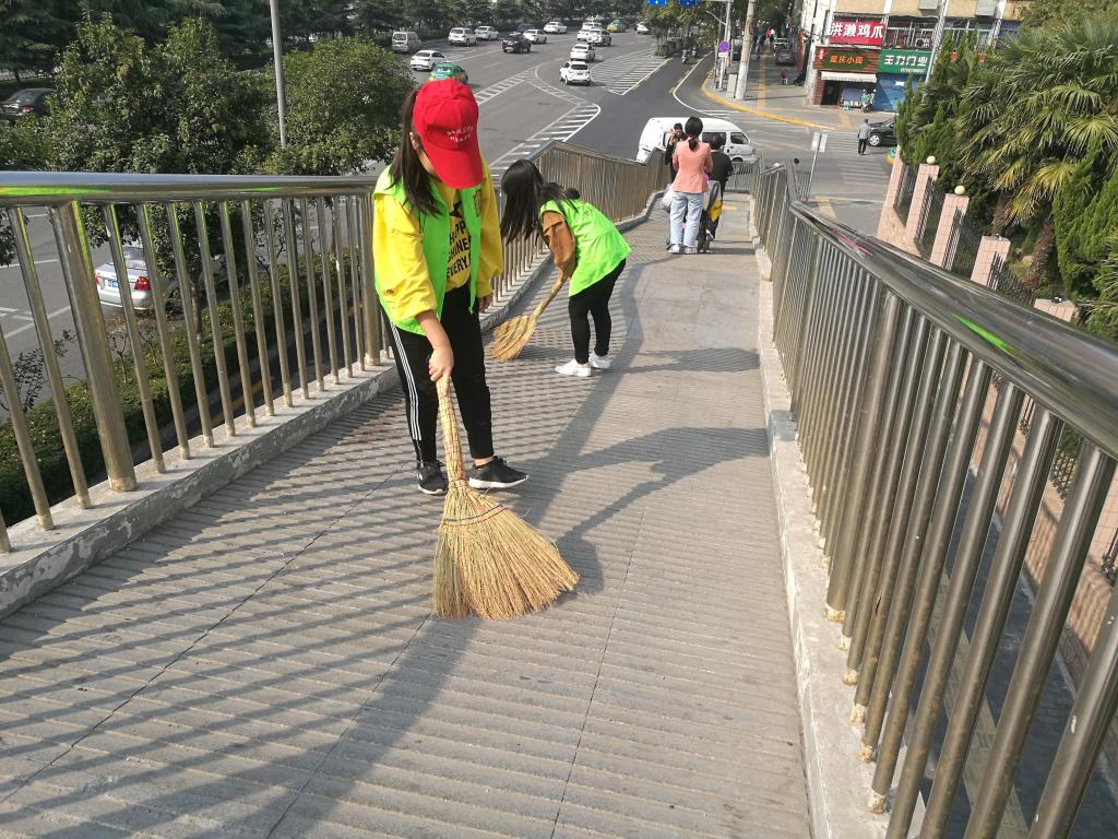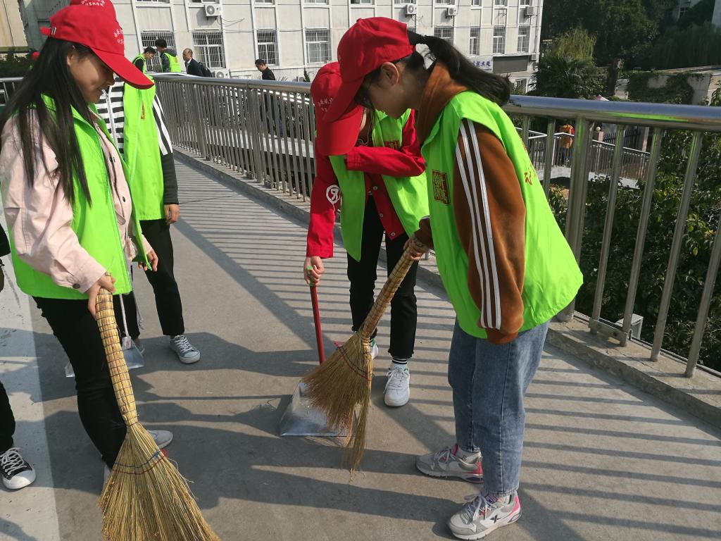 10月14日中午,beat365中文登录入口学生党支部组织第二十期入党积极分子开展“清扫西航天桥”志愿活动。