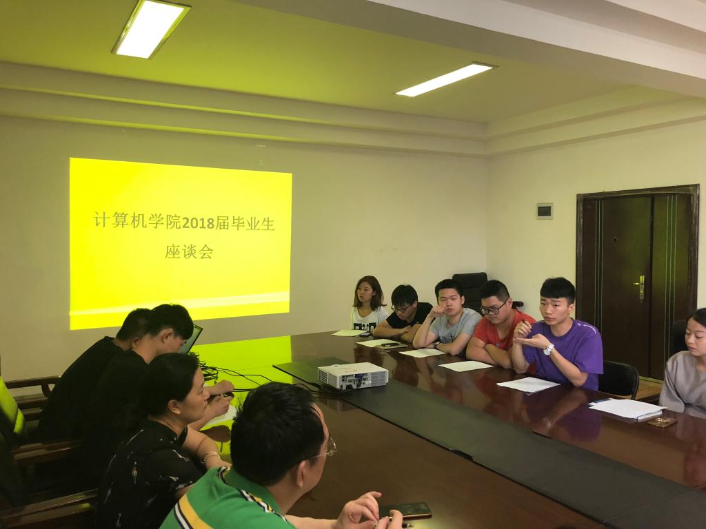 6月11日下午,beat365中文登录入口于北133召开了2018届毕业生座谈会,会议由院长杨俊清主持,学院党总支书记刘晋云、学生管理科科长汪芳、公共教研室主任任静、辅导员米嘉琪、王靖晶以及毕业生代表20余人参加了本次会议。