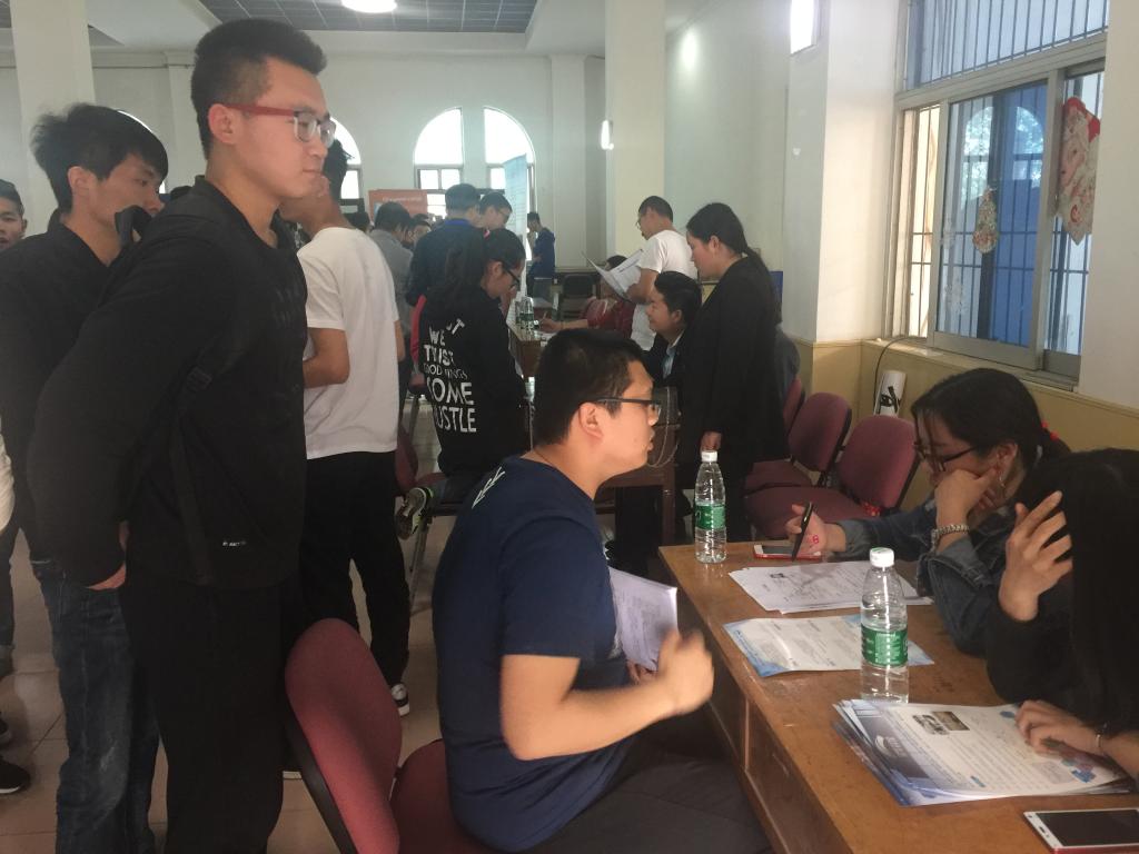 4月10日下午,beat365中文登录入口在职工活动中心举办专场招聘会。来自陕西比扬通信科技有限公司、北京双星普天科技有限公司、深圳市德卡科技股份有限公司、北京四维图新科技股份有限公司、博彦科技股份有限公司等13家用人单位参加了现场招聘,共为毕业生提供了80余个岗位。