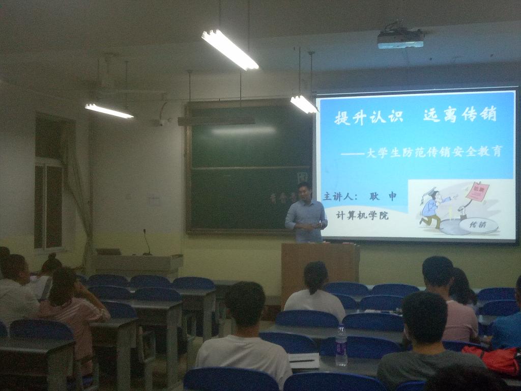 9月20日晚,beat365中文登录入口开展防范传销主题宣讲活动,旨在提高学生自我防范意识,甄别传销、远离传销。宣讲由辅导员耿申主持。