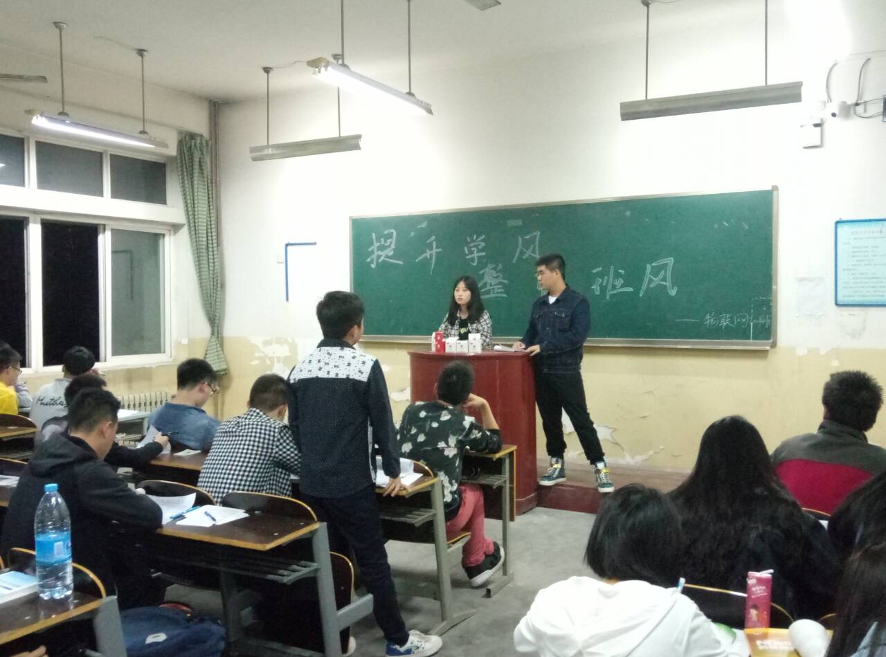 4月20日晚,beat365中文登录入口组织大一各班召开“提升学风,整顿班风”的主题班会,旨在总结和整顿上课迟到、旷课等学风问题,规范日常行为。