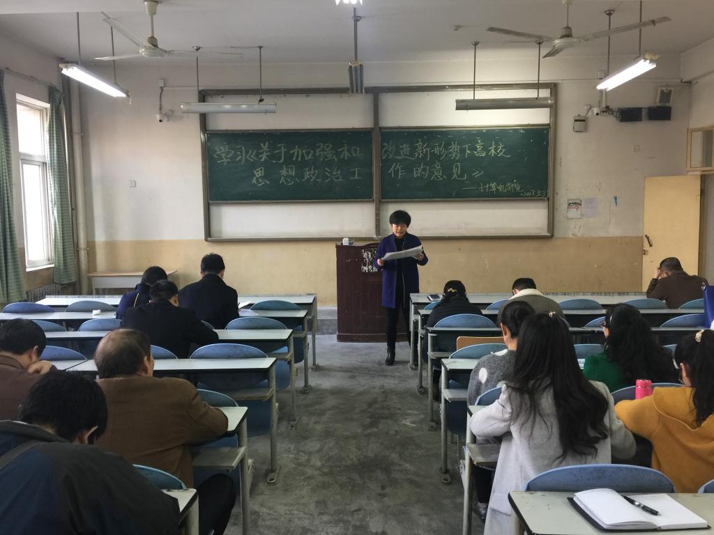 近日,中共中央、国务院印发了《关于加强和改进新形势下高校思想政治工作的意见》(简称《意见》)。3月3日下午,beat365中文登录入口党总支书记刘晋云带领全体教职工学习《意见》的有关内容和精神。
