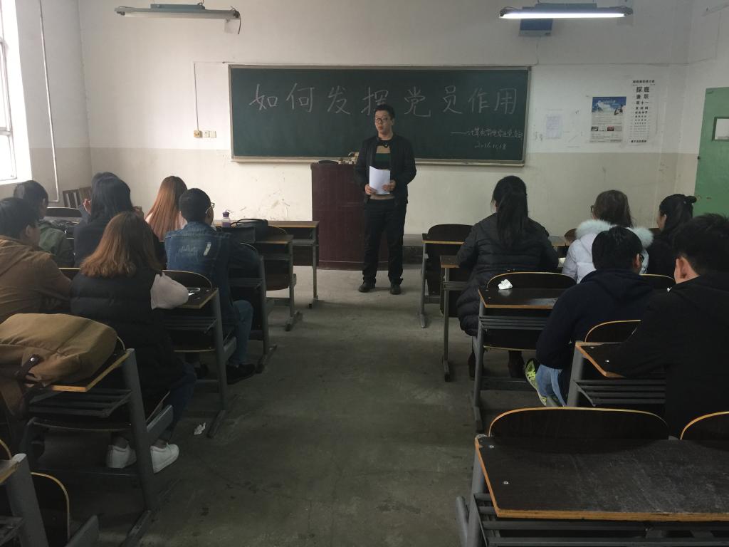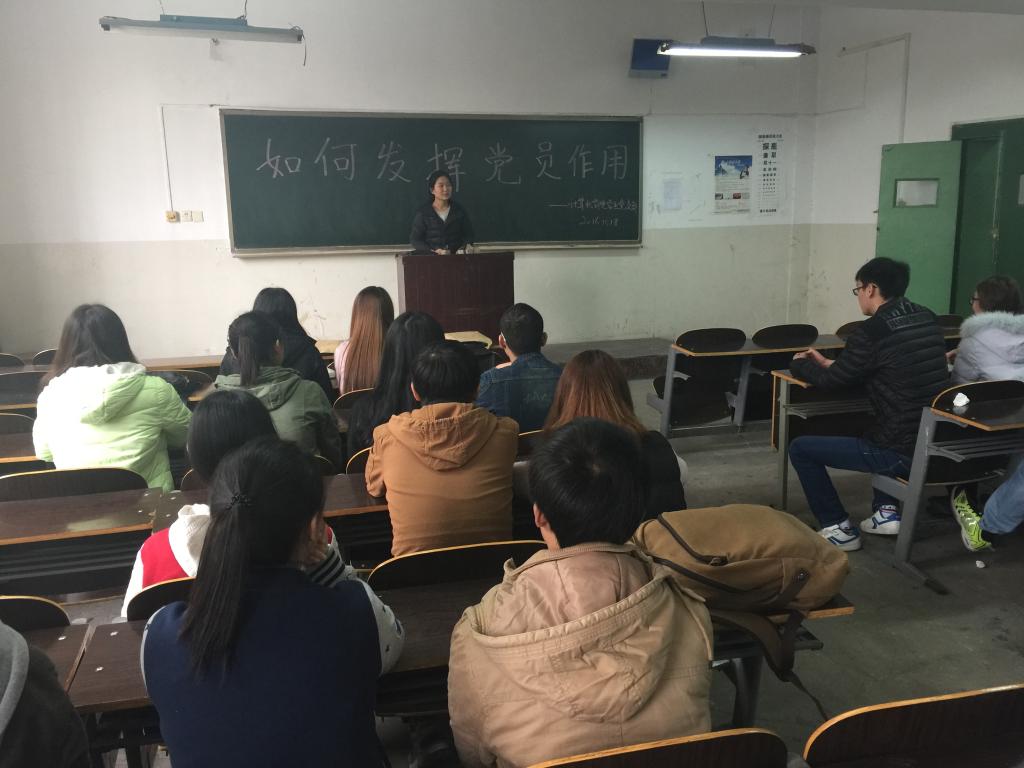 首先,米嘉琪向大家传达了《中共beat365中文登录入口委员会民主评议党员制度的实施办法》的通知,从自我评价、民主评议、组织考察、确定评议档次四个方面部署了2016年度学生党员的民主评议工作,要求全体党员在评议准备阶段认真学习《党章》和习近平总书记重要讲话,提高思想认识,端正评议态度,对自己一年来的各方面表现进行综合的检查和评价,努力做到求真务实,共同提高。接着,米嘉琪结合“两学一做”学习教育活动,就如何发挥党员作用进行讲述,希望大家认真学习领会“两学一做”精神,进一步提高党员思想觉悟;持之以恒地践行“两学一做”,把党员的先锋形象树起来;拓宽发挥渠道,推动“两学一做”取得实效,可以由党员牵头开展《党章》、准则、条例知识竞赛,激发其他同学的学习兴趣。最后,学生党员纷纷上台表达了自己的观点:践行“两学一做”并非一朝一夕,而是一个持久过程,只有党员真正接收,主动践行,才能充分发挥党员先锋模范作用,更好地服务大家。
