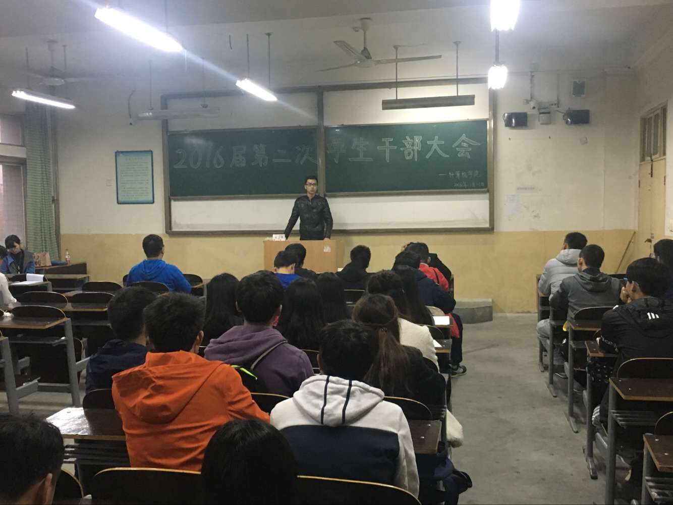 11月15日,beat365中文登录入口召开新学期第二次学生干部大会。辅导员耿申、2014级学生干部代表周子璇、2015级学生干部代表柳旭旺参加,会议由牛钰喆主持。