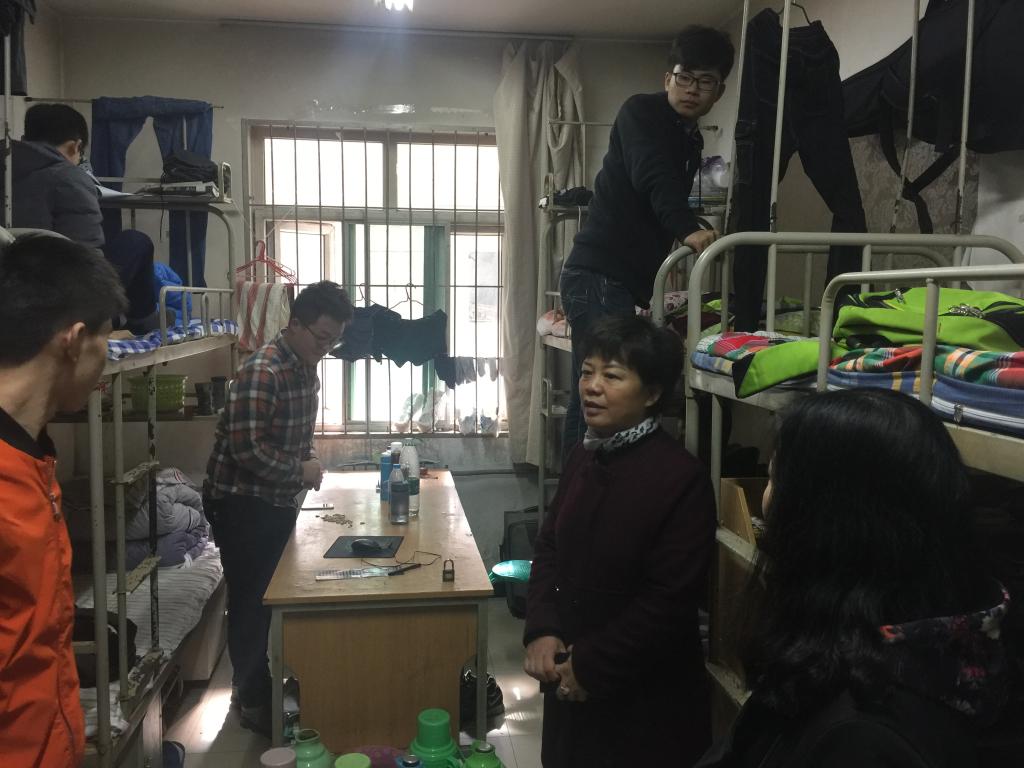 为保障学生的生命、财产安全,确保学校“平安校园”工作的顺利实施,11月8日中午,由党总支书记刘晋云、学生管理科科长汪芳及全体辅导员对学生宿舍进行冬季安全检查。
