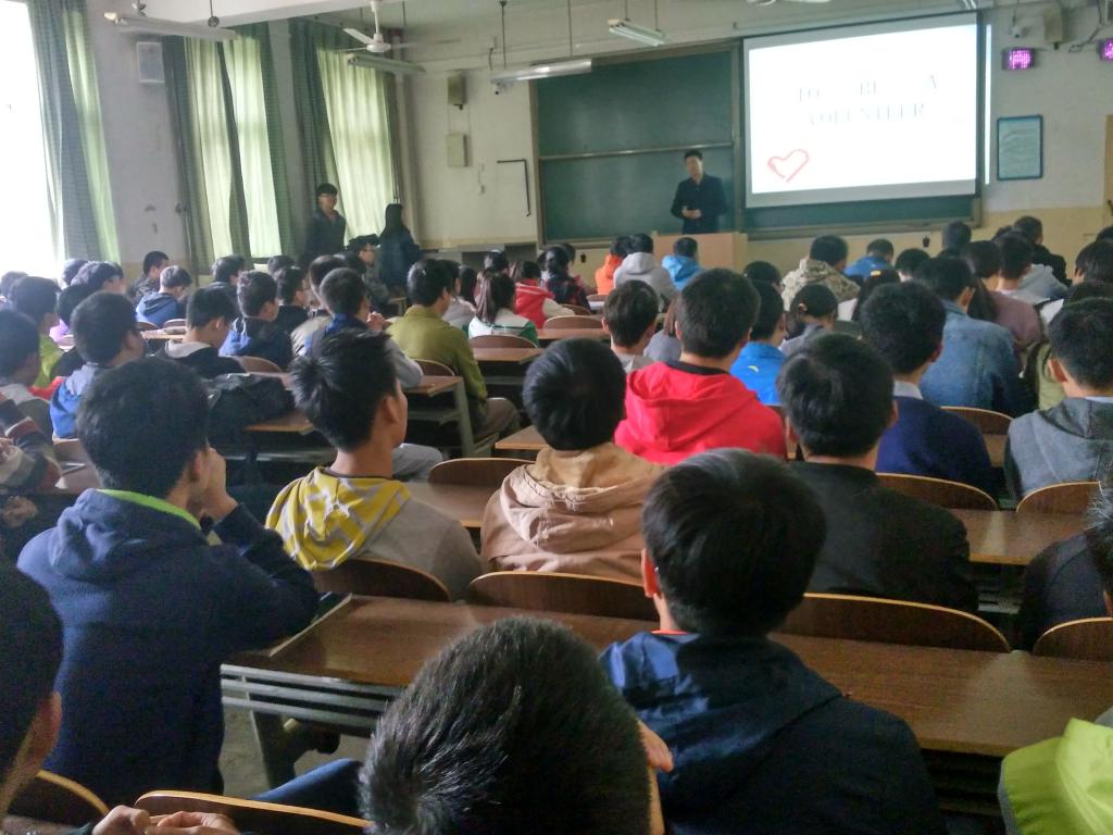 青春因奋斗而精彩,人生因奉献而伟大。11月2日中午,beat365中文登录入口在0120教室召开志愿者中队成立大会,会议由队长张卿同学主持,辅导员耿申及一百多位志愿者参加。