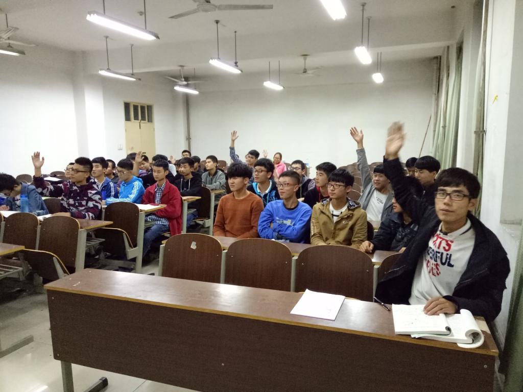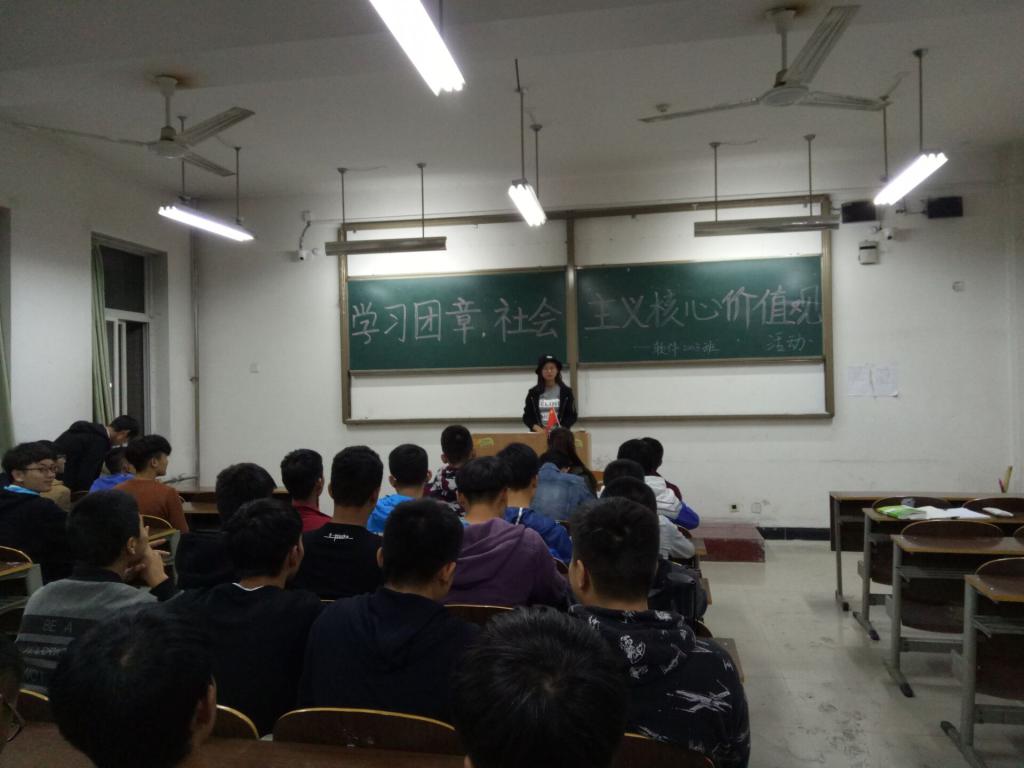 首先,各班主持人带大家学习团章的内容,在“团员的权利和义务”方面让同学们发表自己的看法和感受。接着,通过“击鼓传瓶”的游戏,引入“争做‘有理想、有追求、有担当、有作为、有品质、有修养’的大学生”内容:主持人面对黑板数数,瓶子在同学之间传,当主持人喊停,持瓶者讲述自己作为一个大学生要做什么,有提倡学习为主兼体育锻炼的,也有提倡加入社团活动提高自身综合能力的,同学们各抒己见,现场气氛热烈。最后,通过抽纸条游戏来引入社会主义核心价值观的内容,富强、民主,文明、和谐、自由、平等、公正、法治、爱国、敬业、诚信、友善,同学就自己抽到的内容讲述其意义和观点。