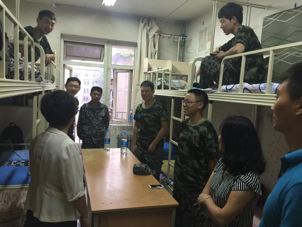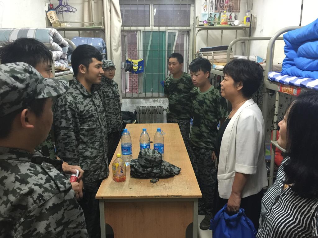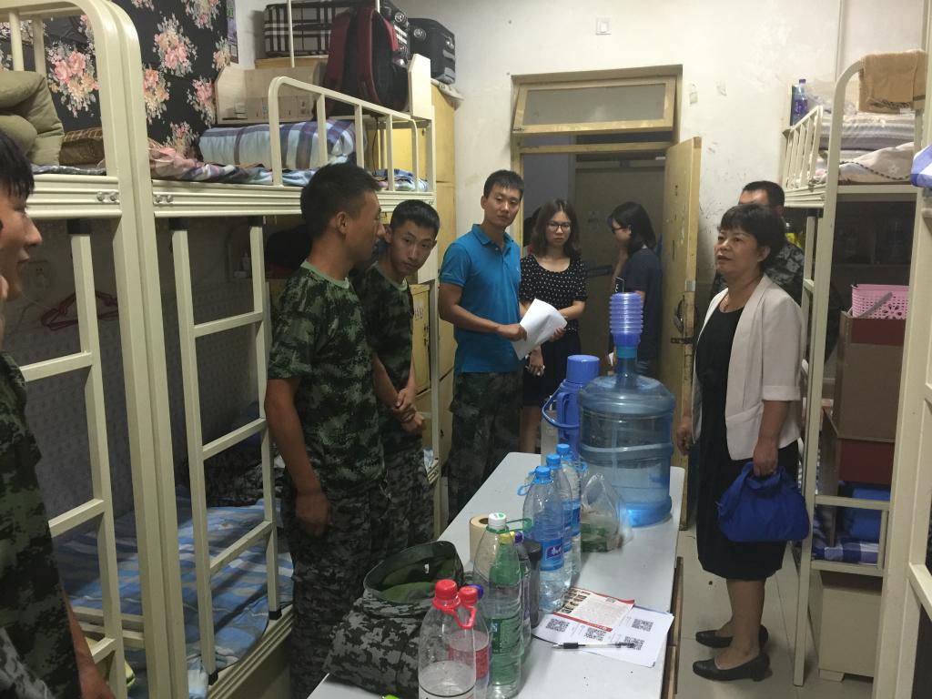 9月14日,beat365中文登录入口党总支书记刘晋云、学生管理科科长汪芳带领全体辅导员和大一班主任到学生公寓进行走访,在调查新生军训期间生活状况的同时,也给学生带来了中秋节日的问候。