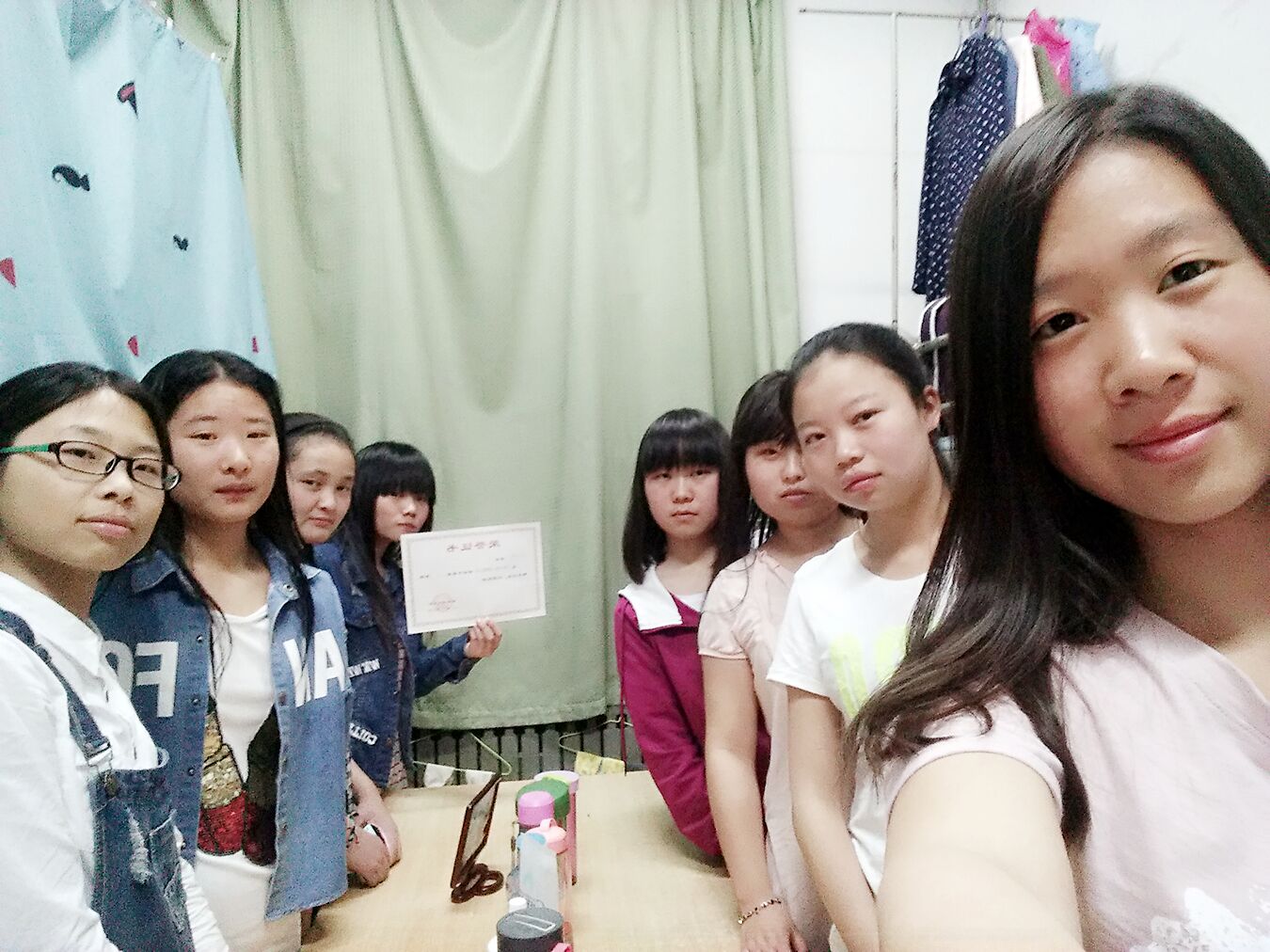 在4月28日的评选中,多数宿舍被子排放整齐,床单平坦无痕,书桌摆放井然有序,鞋子整齐地排成一条线,地面干干净净,门窗擦得一尘不染,一进宿舍就有一种干净、明亮的感觉。但是在检查过程中,仍发现有所不足:个别宿舍平时打扫卫生不积极,当检查时才急急忙忙整理;有些学生在床上堆一些书或其他生活用具,使床面显得凌乱。
