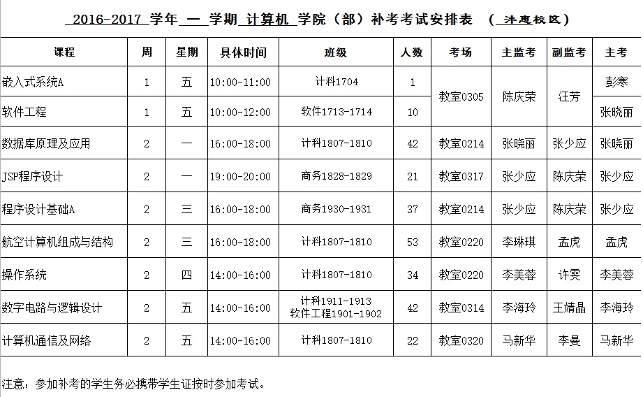 2016-2017-2学期beat365中文登录入口补考安排表