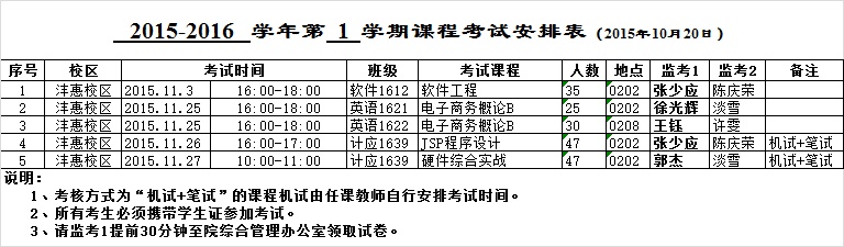 beat365中文登录入口2015-2016-1学期考试安排(一)
