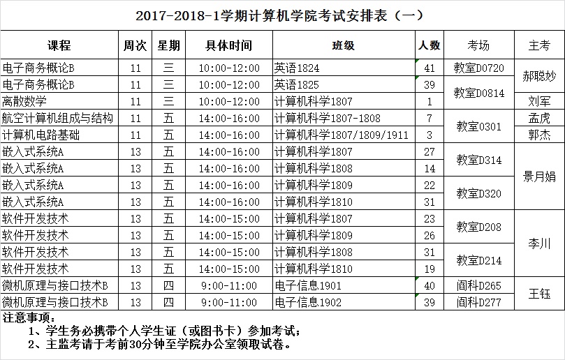 2017-2018-1学期beat365中文登录入口考试安排(一)