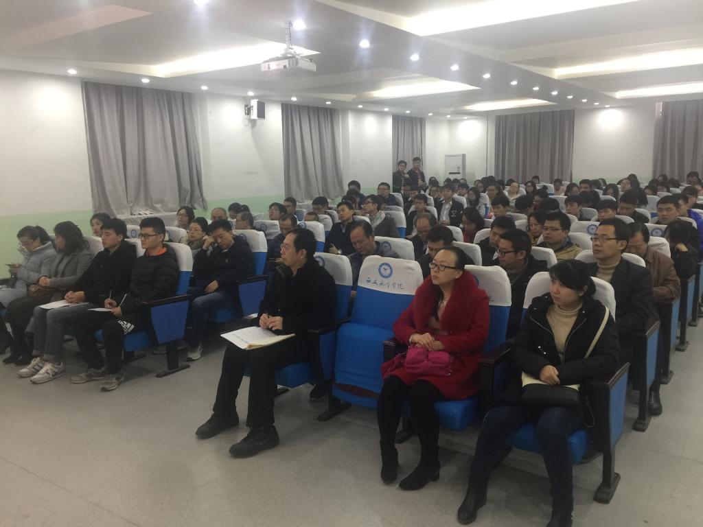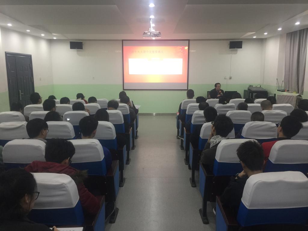为了深入学习十九大报告,11月24日下午,beat365中文登录入口在沣惠校区教学南楼108报告厅召开学习十九大精神专题报告会。此次邀请了我校党的十九大精神宣讲组成员、思政部副部长张雷作专题报告。会议由beat365中文登录入口院长杨俊清主持,全体教师和学生党员共90余人参加了会议。