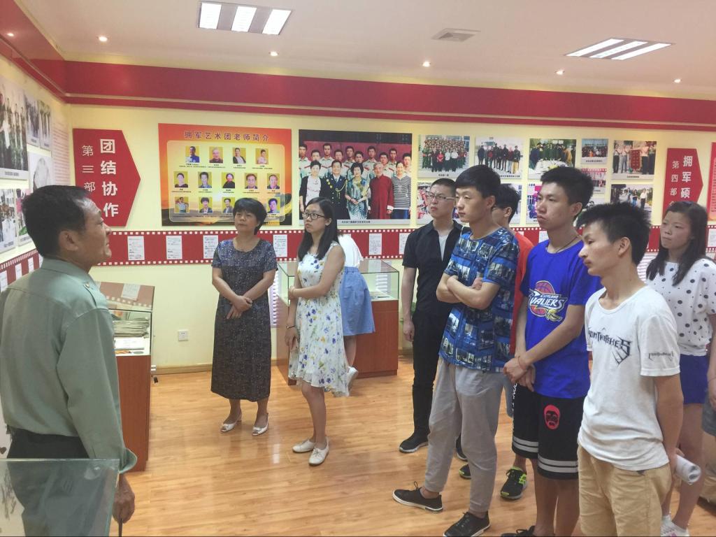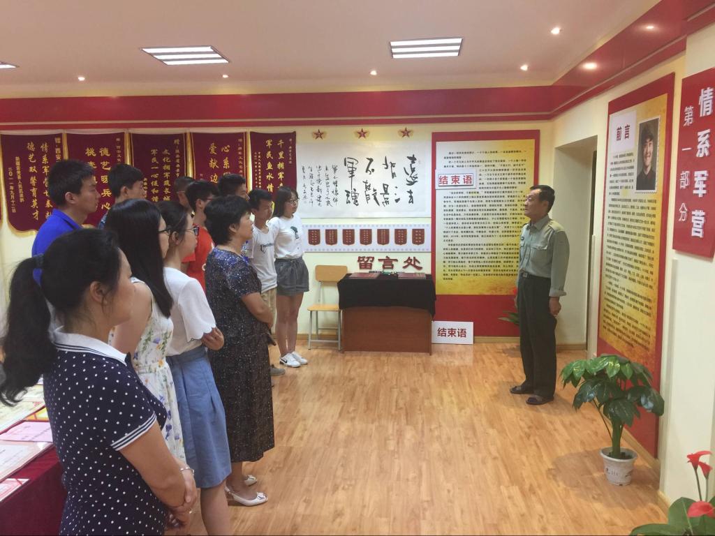 我校退休职工“双拥模范”李新建老师以他几十年的工作经验和人生阅历在展馆进行了生动深情的讲解。展馆分情系军营、拥军之路、团结协作、拥军硕果四个部分,各种照片,实物和证书充分展现了李老师全心全意投入拥军工作,心系部队,情系军营的优良作风,以及走遍祖国大江南北,为全国各地尤其是新疆边防士兵做文艺工作培训的艰苦历程和丰硕成果。
