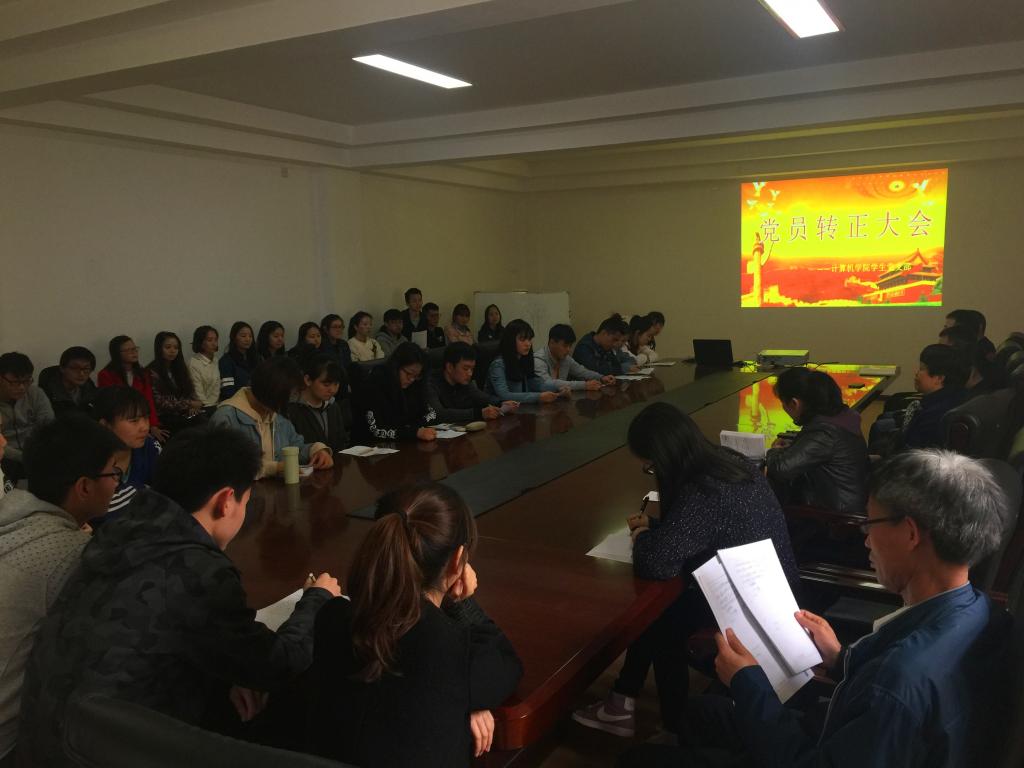 各位申请转正的同学依次进行简短发言,主要讲自己一年预备期中各方面的总结。之后各入党培养老师分别作出评价,介绍其这一年预备期中思想、学习、生活上的优缺点,并表达是否建议其转为正式党员的看法。经过支部同志自由发言,表达意见或提出改进建议后,支部正式党员进行举手表决,表决结果是全部全票通过。支部书记汪芳对转正的同学们提出了三点更高的要求:更加务实、注重学习、关心身边人。最后,党总支书记刘晋云希望同学们继续加强党性修养,提高综合素质;希望毕业班的学生党员在走向工作岗位以后发挥自己的光和热,把好的传统和作风带到岗位中去,继续为社会做贡献。
