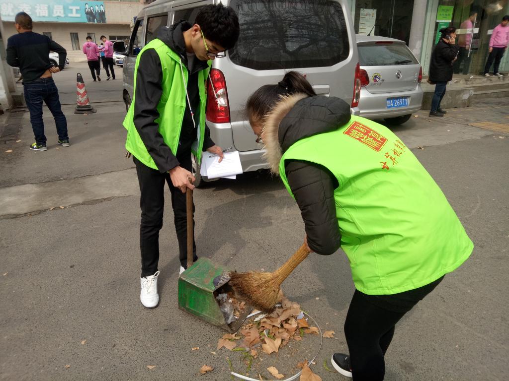 3月17日下午,beat365中文登录入口学生党支部组织37名入党积极分子在学校周围开展协助环卫工人打扫街道志愿活动,旨在感谢环卫工人对城市美化做出的重要贡献,表达对城市美化者默默无闻,无私奉献,爱岗敬业的敬仰。