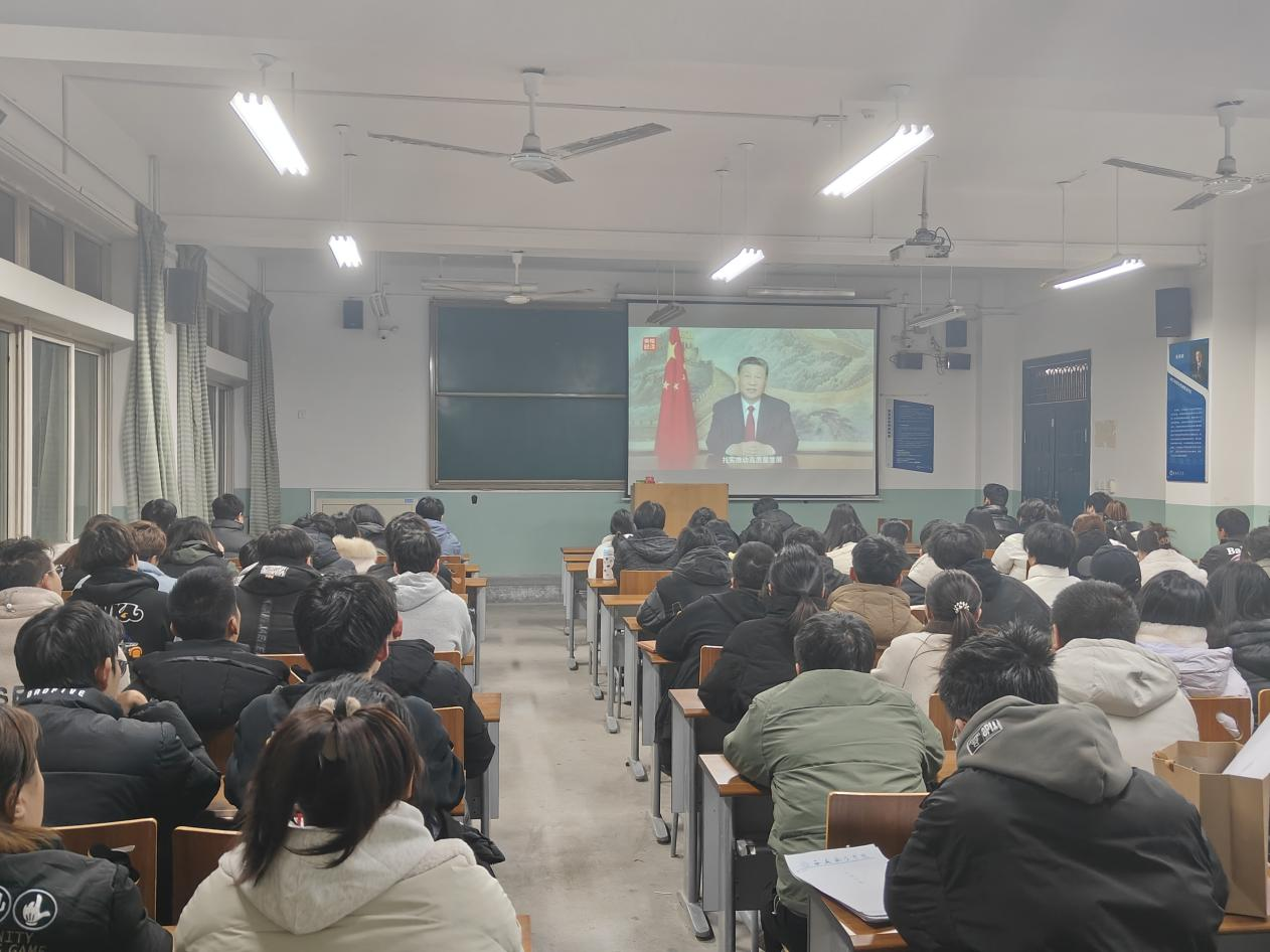 新年贺词中,习近平主席回顾了我国在过去一年里的发展亮点,包括庆祝新中国成立75周年、海军和空军成立75周年、澳门回归祖国25周年等重要时刻。他指出,我国国内生产总值预计超过130万亿元,粮食产量突破1.4万亿斤,新能源汽车年产量首次突破1000万辆,这些数据充分展示了我国经济的强劲发展势头。同学们深刻认识到党和国家事业发展的宏伟蓝图,更加明确了青年大学生要勇敢做新时代的追梦人,切实肩负起新时代新征程党赋予的使命任务。