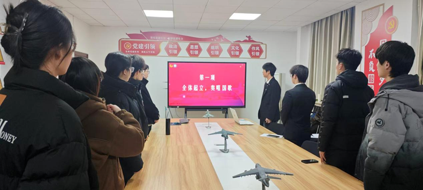 全体人员齐唱国歌后,组织部负责人任昶睿以 “科技强国路,青春正当时 —— 在入团新起点上践行初心使命” 为题,结合近代史与当代科技成就,讲述青年科技工作者报国故事,点明青年是科技强国生力军、团员肩负科技攻关与创新突破的时代责任,随后结合团的使命与团员义务,引导新团员思考个人成长与科技强国的融合,明确自身职责。