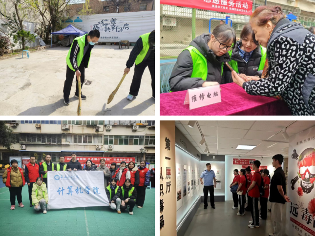 志愿服务品牌化发展,组建“E 心一意志愿服务队”“E 路禁毒社会实践队”两支特色队伍,注册志愿者千余人,围绕电脑义诊、智慧助老、少儿编程科普、社区服务等开展志愿活动八十余场,累计服务时长超两万五千小时。其中“电脑义诊进社区”“数字科普助老” 等项目成为标志性服务,累计为师生及社区居民解决技术难题数百件,获评校级优秀志愿服务项目一项。