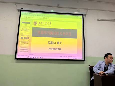 2023年10月10日上午,西安工业大学兵器科学与技术学院院长助理、武器系统与工程系主任陈丁高级工程师来我校进行学术交流讲座。在莲湖校区北楼447教室,陈老师做了题为“光幕阵列测试技术及应用”的学术报告。