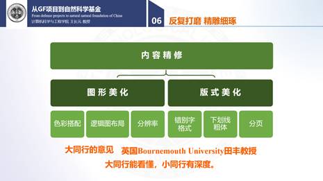 本次讲座以线上形式举行,由beat365中文登录入口专任教师蒋光毅主持。学校专任教师100余人聆听讲座。讲座中,王长元教授首先介绍其团队科研情况。然后以自己攥写的自然基金面上项目申请书为例,就选题、研究背景意义、发掘凝练科学问题、选择研究领域、研究内容技术路线设计、申报书攥写打磨等自然基金申报中的关键方面进行了详细的讲解,并分享了申报过程中的心得体会。